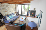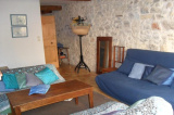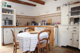 Cuisine aménagée et équipée avec plaque de cuisson, mini four, lave linge, lave vaisselle, frigo top. Salon avec cheminée, télévision, clic-clac.