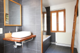 Au RDC : une cuisine entièrement équipée, une chambre avec un lit en 140, une salle d'eau et un WC .