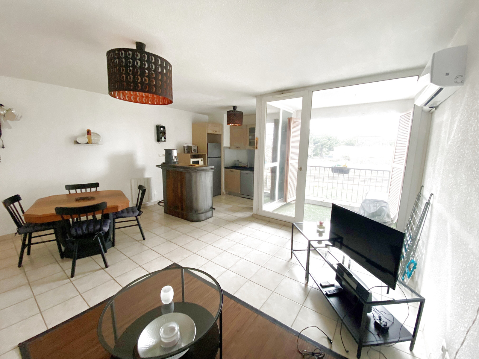 Joli appartement de type P3 meublé composé, d'un coin cuisine sur la pièce principale avec climatisation réversible, 2 chambres avec placards, salle de bain, WC séparé et terrasse.