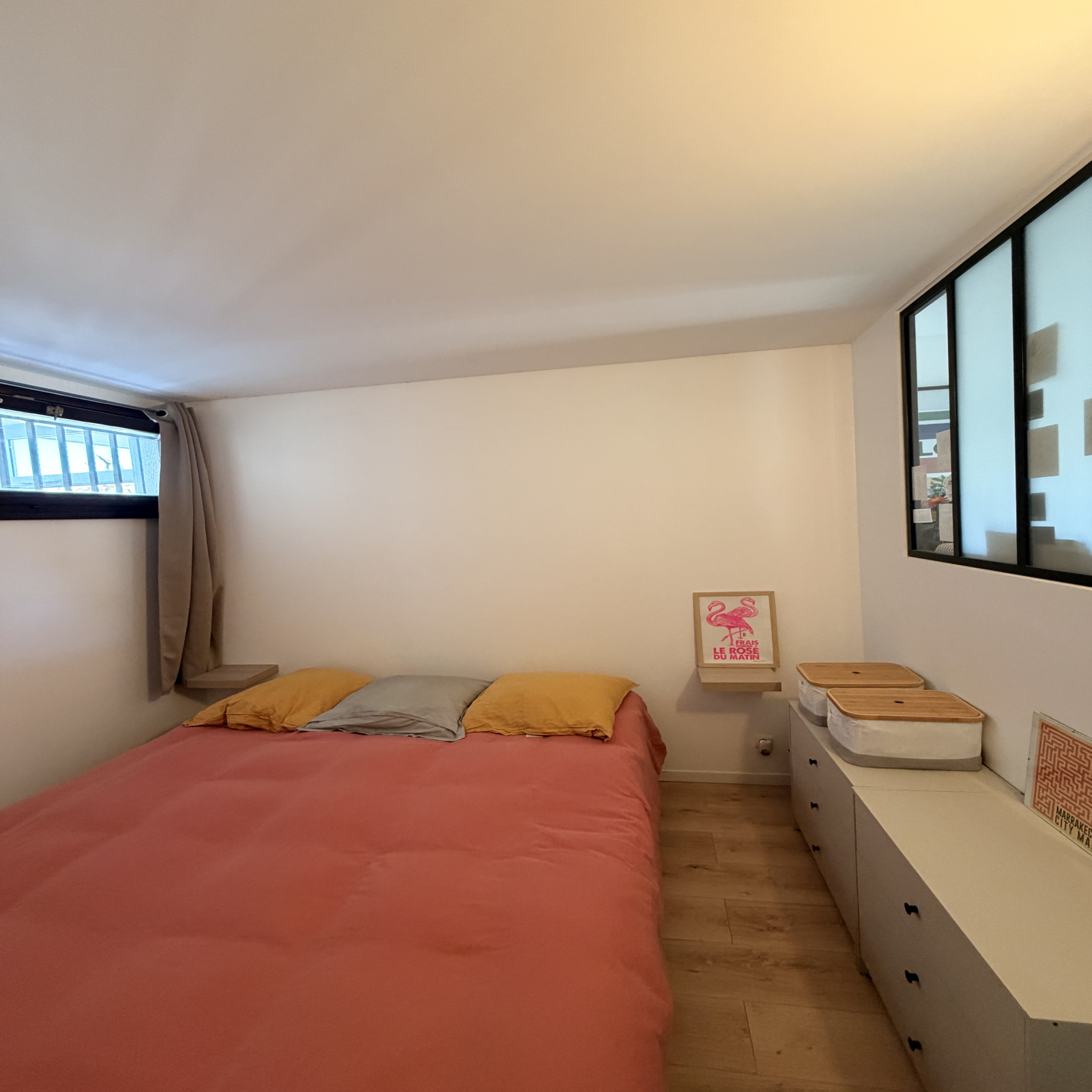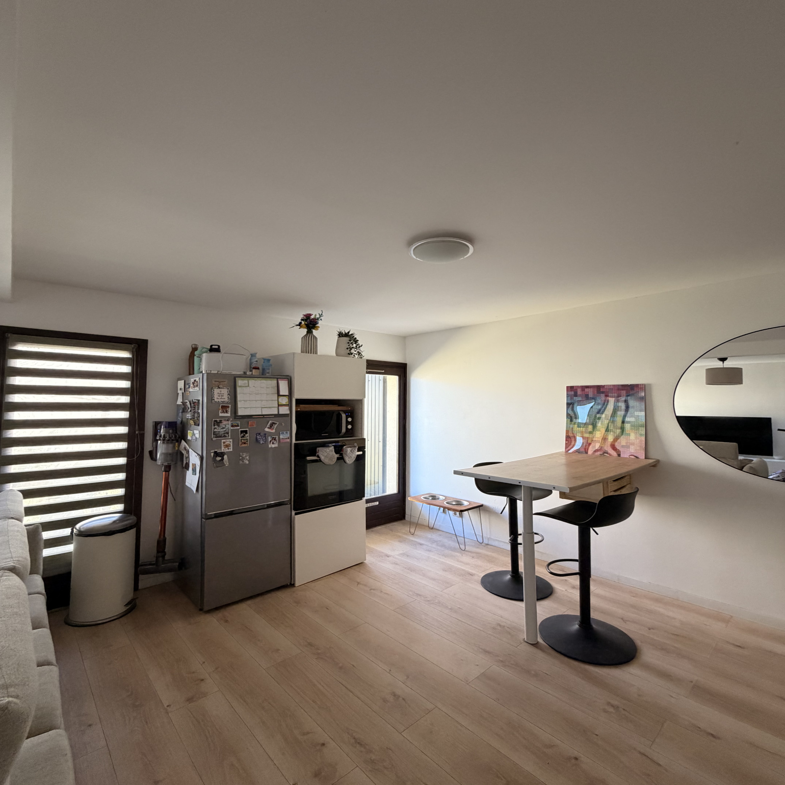 En bordure du canal, dans une résidence sécurisée, au rez-de-chaussée appartement de type 2 avec terrasse, jardinet et places de parking se composant d'un coin cuisine sur la pièce principale, 1 chambre, salle de bains, wc séparé.