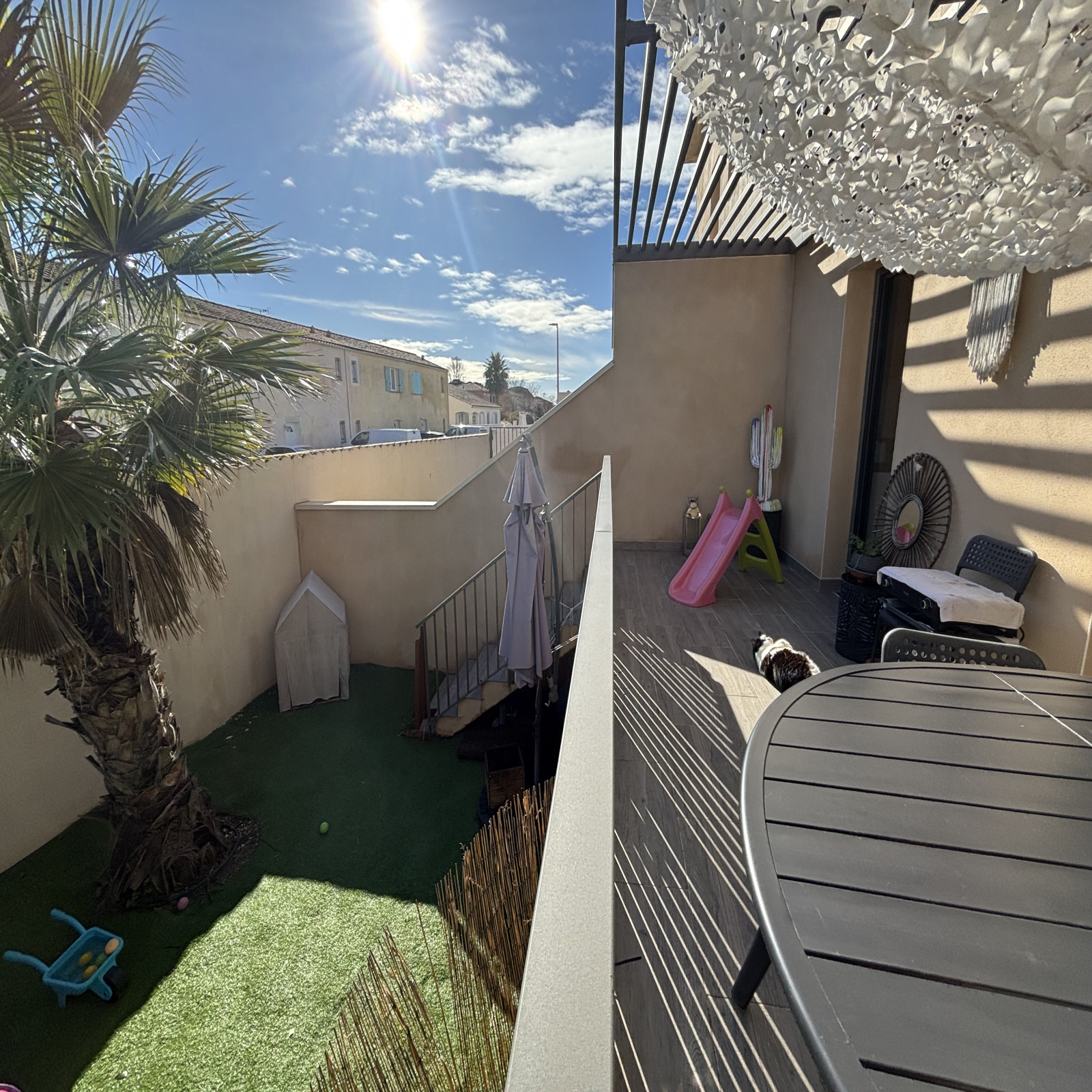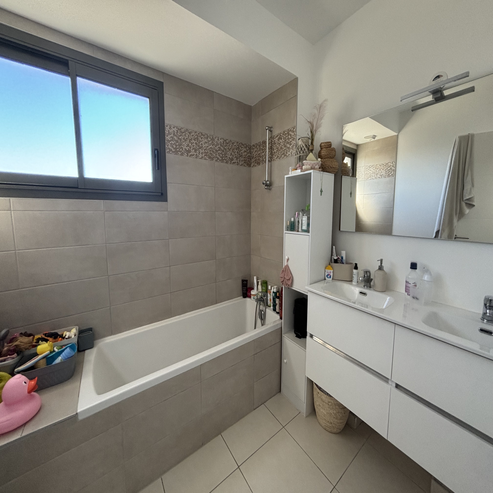 Dans quartier résidentiel, jolie maison de type P4 composée d'un coin cuisine semi équipé sur la pièce principale, 3 chambres avec placard, salle de bain, 2 WC séparés, débarras, terrasse , jardin et garage.