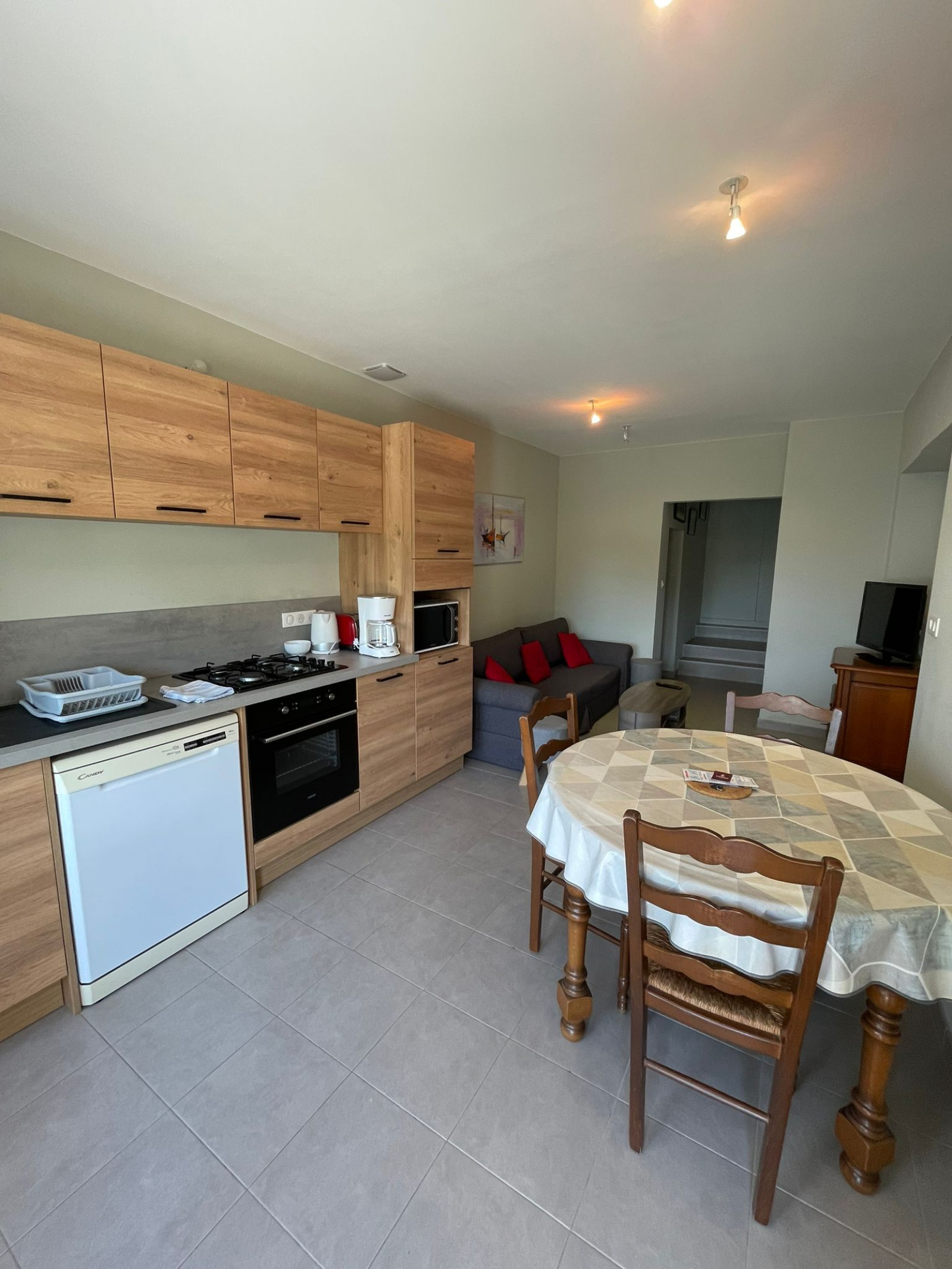 Il est constitué d'une cuisine entièrement équipée et ouvert sur un agréable salon.