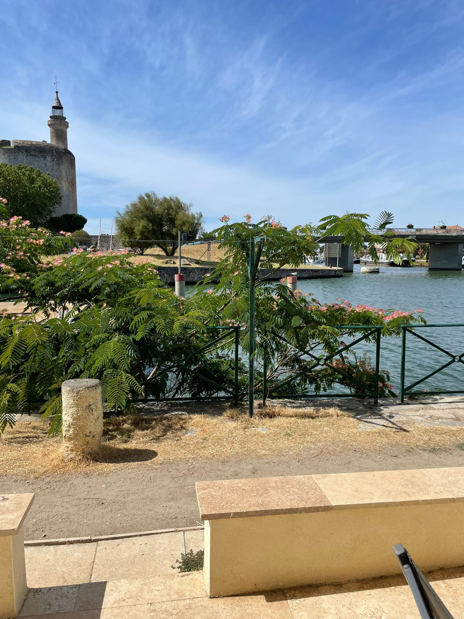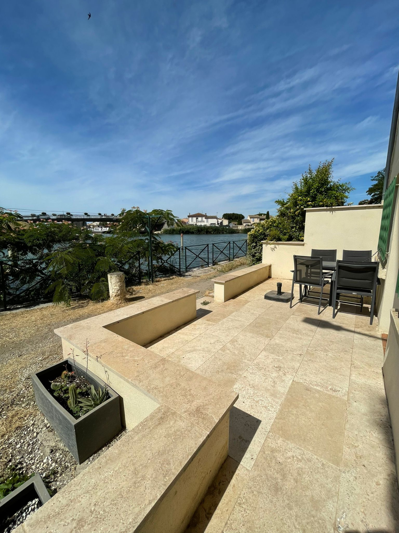 Depuis le salon, un accès à une sublime terrasse avec une vue imprenable sur le canal et la tour de constance.