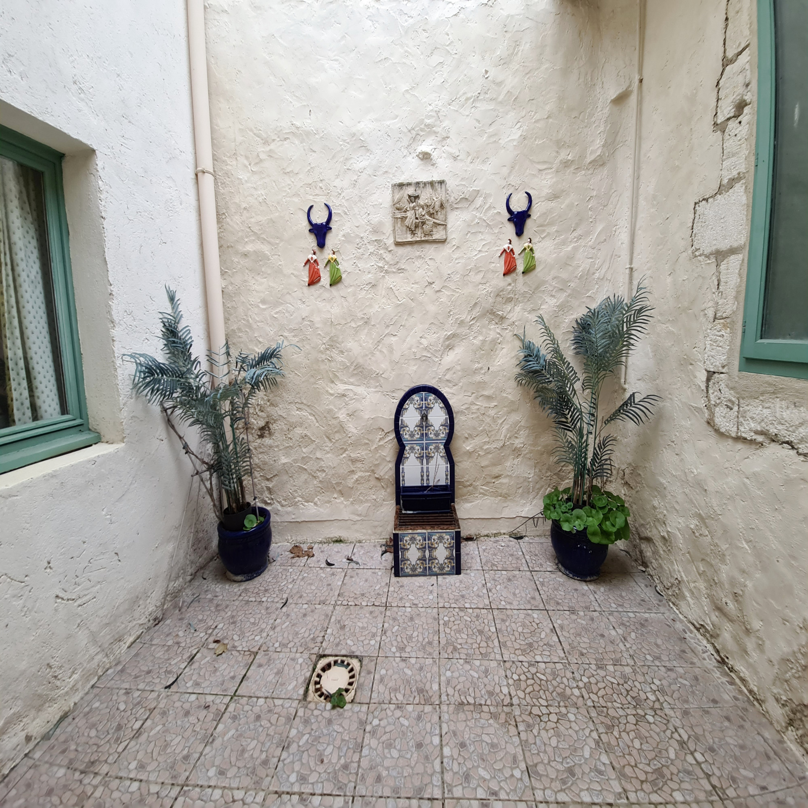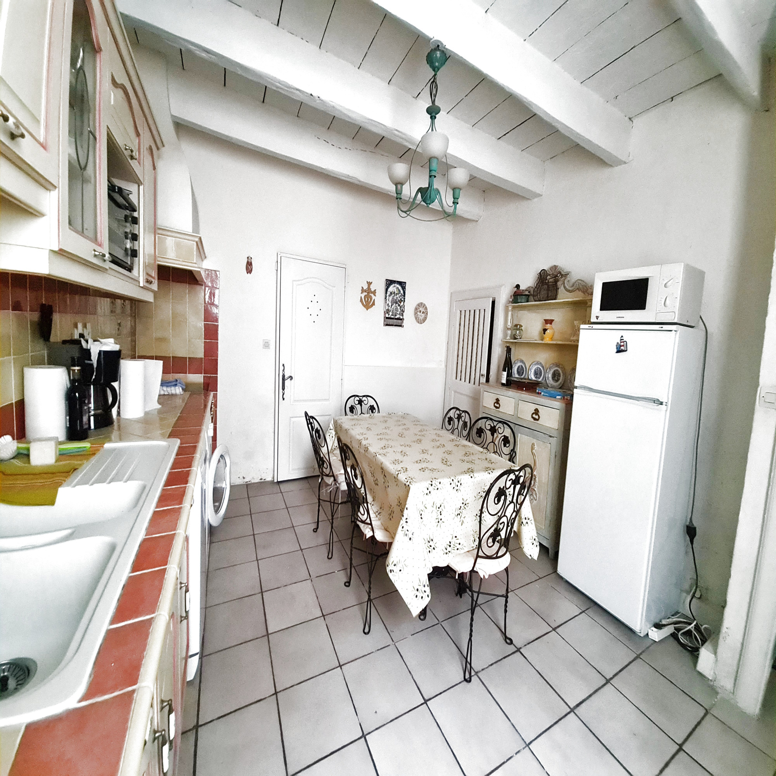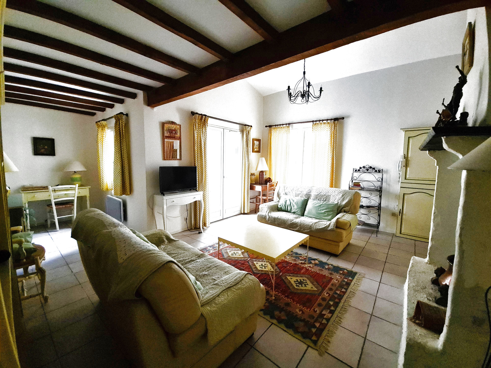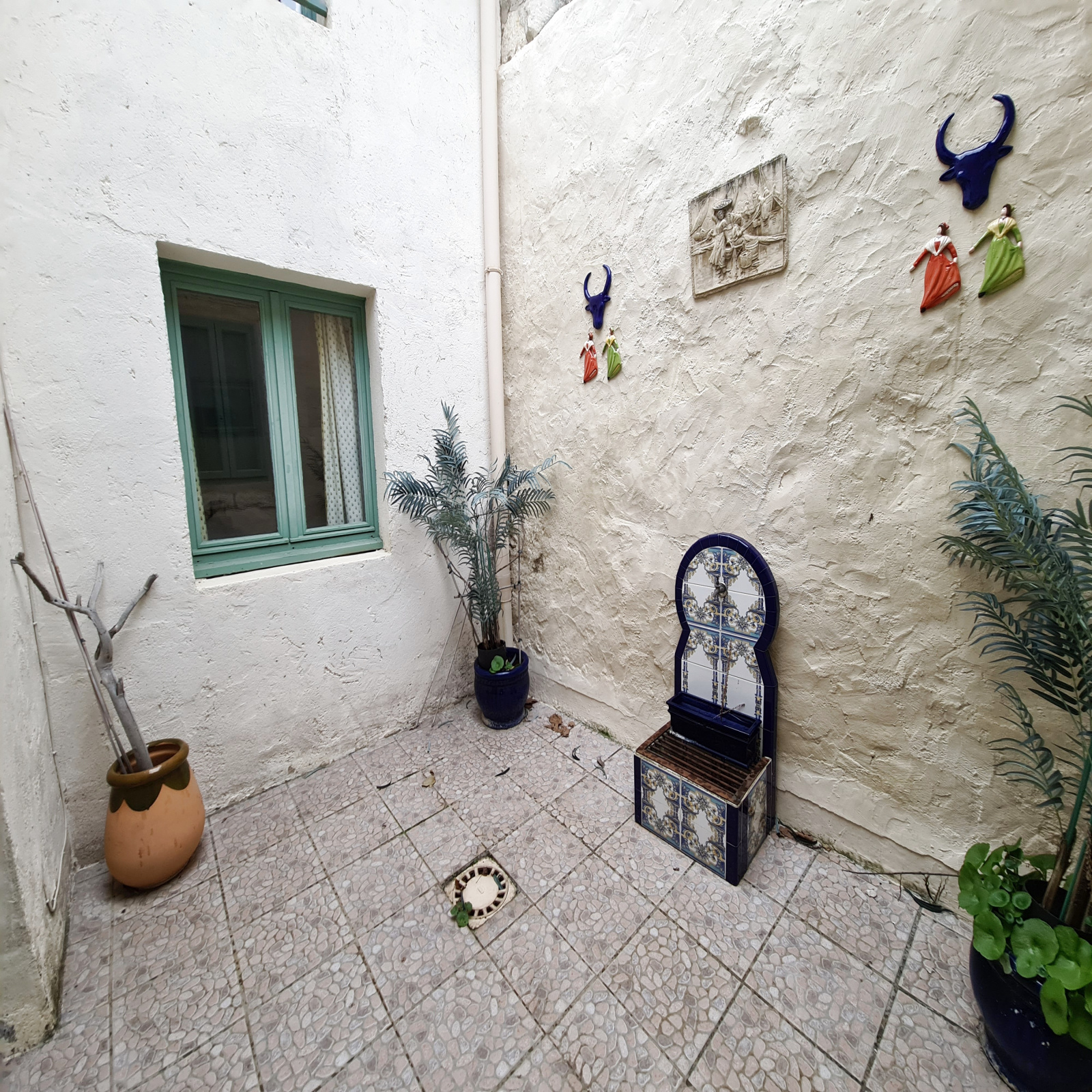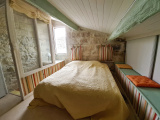 Dans la cité médiévale, quartier calme, charmante et agréable maison de village composée au rez-de-chaussée d'une cuisine équipée avec cellier, un séjour salon donnant sur une petite cour exposée sud à l'abri des regards, salle d'eau avec wc.