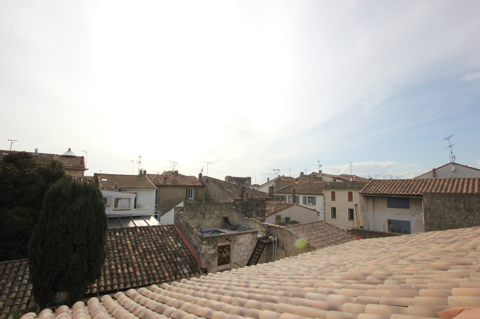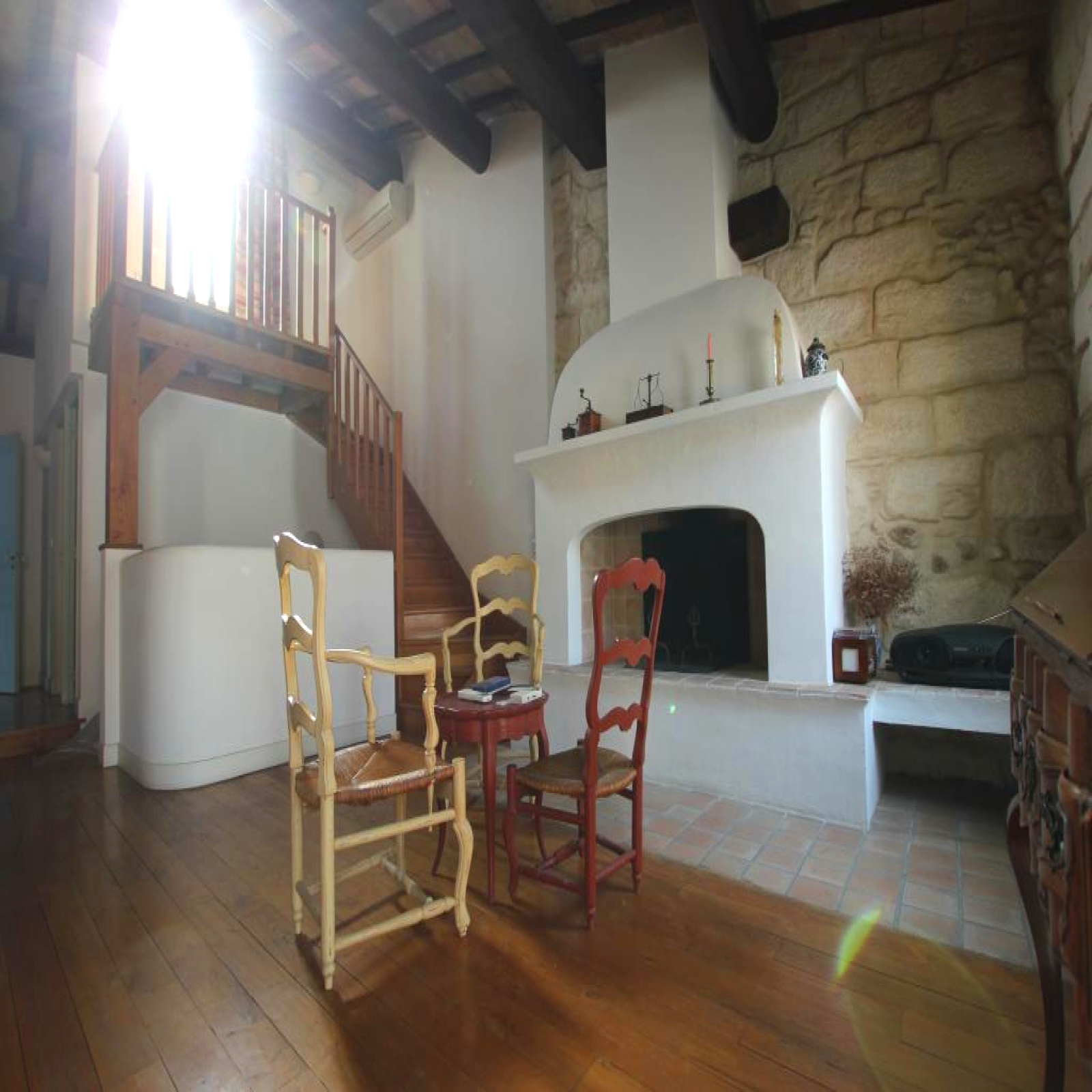 La maison principale se compose d'un vaste hall d'entrée ouvert sur le coin cuisine et le séjour-salon, d'une arrière-cuisine, d'une buanderie, d'un WC avec lave mains, au premier étage se trouve un grand salon avec sa cheminée, 2 belles chambres, salle d'eau, salle de bains, WC séparé et 2 ème étage se trouve le solarium avec une vue imprenable sur les toits de la cité.