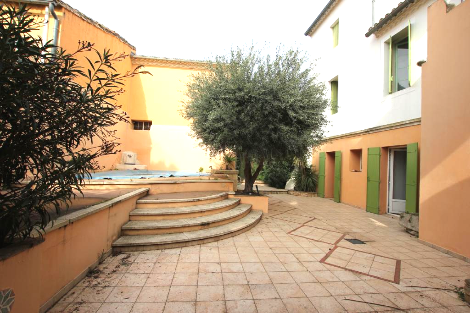 Au centre de la ville fortifiée superbe maison avec une exceptionnelle cour intérieure d'une surface rare d'environ 140 m² avec piscine orientée sud, cuisine d'été et garage. Vous trouverez également une seconde maison avec travaux de finitions.