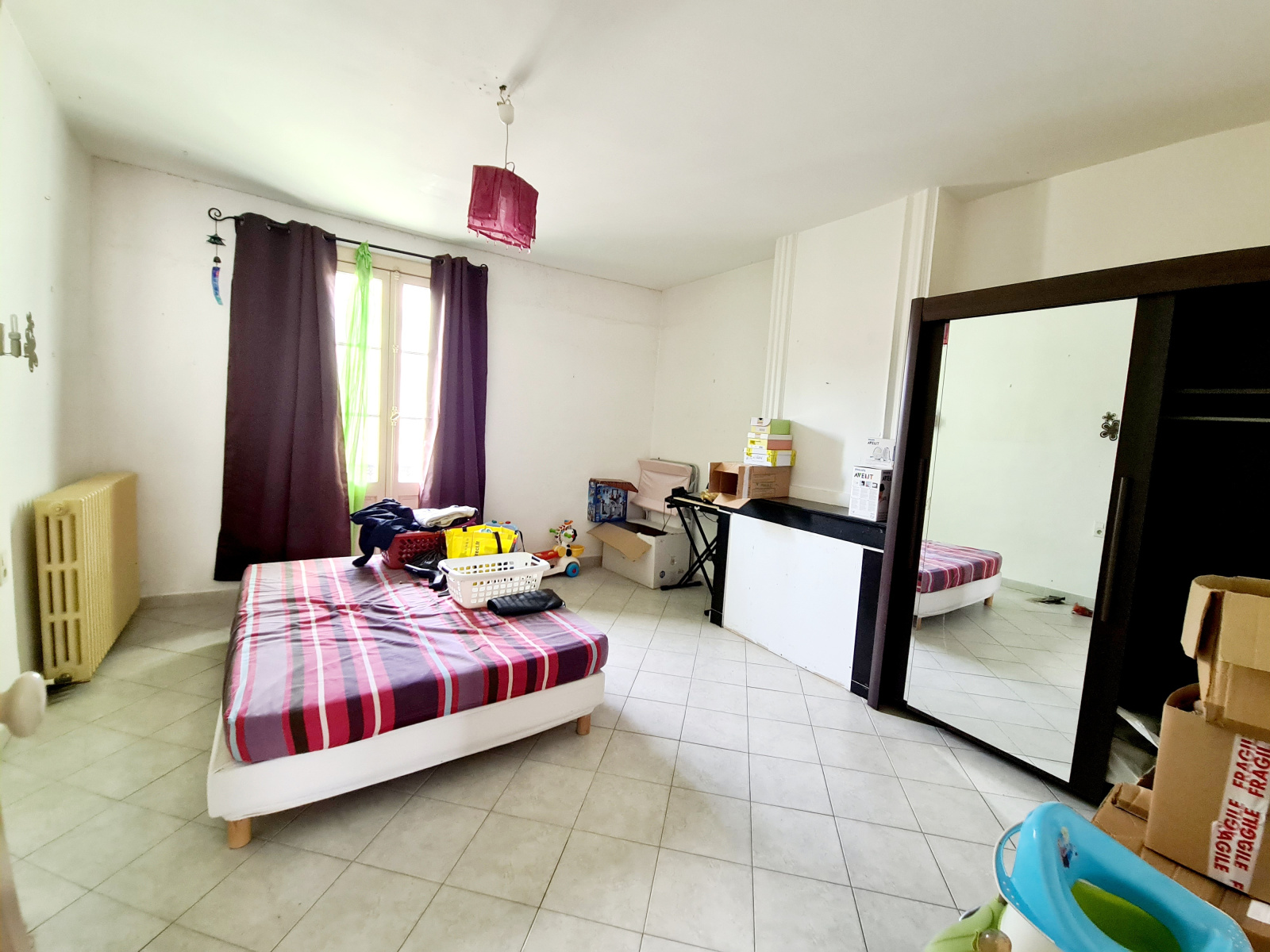 Chauffage gaz, menuiserie en partie en PVC, granito au sol.