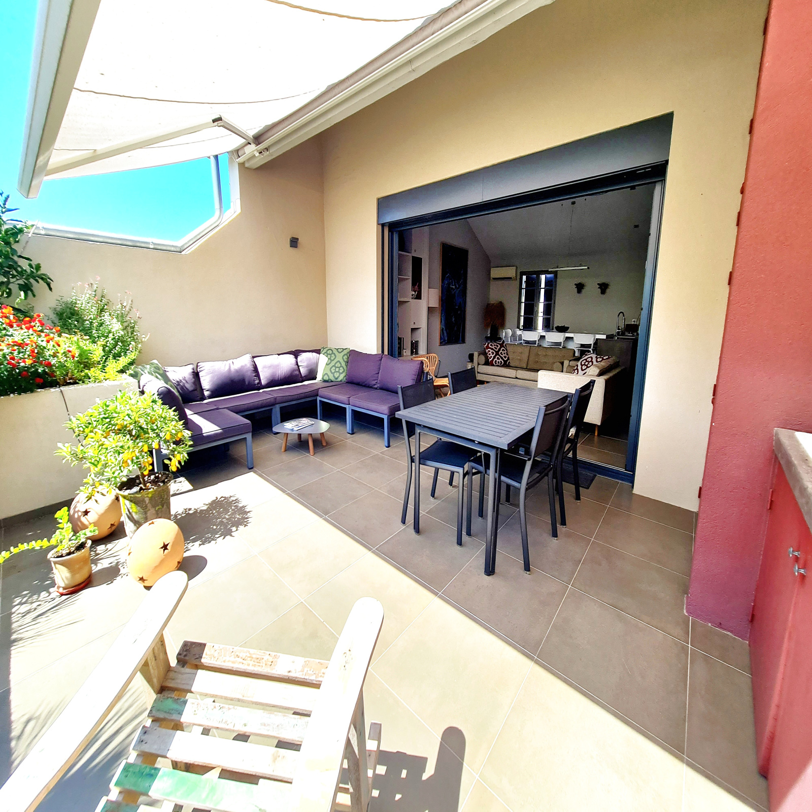 Au 2ème et dernier étage se trouve la grande pièce de vie avec une superbe cuisine le tout ouvert sur la magnifique terrasse de 27 m² qui surplombe les toits de la cité.