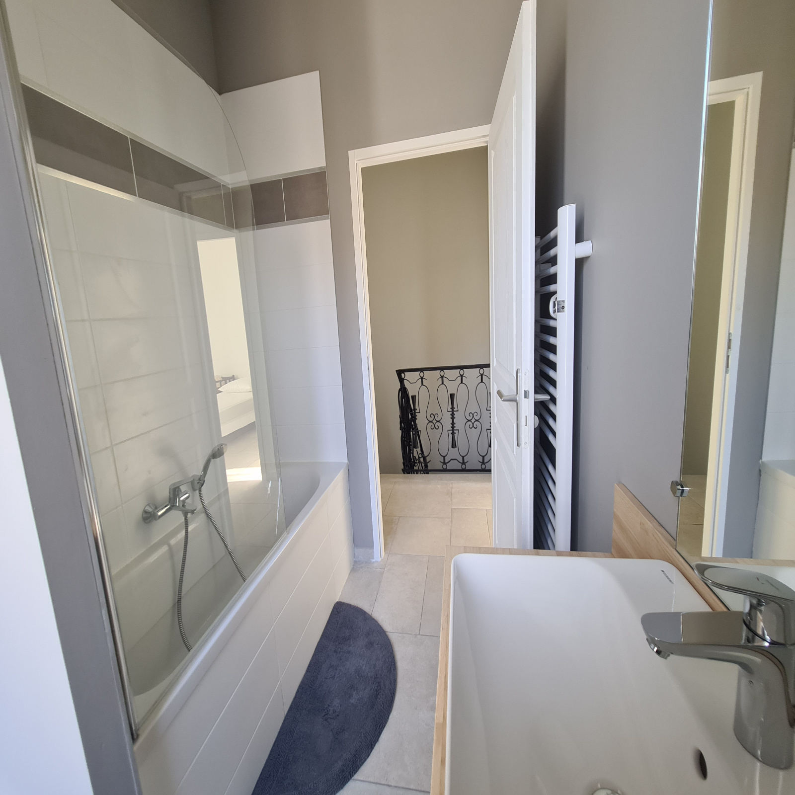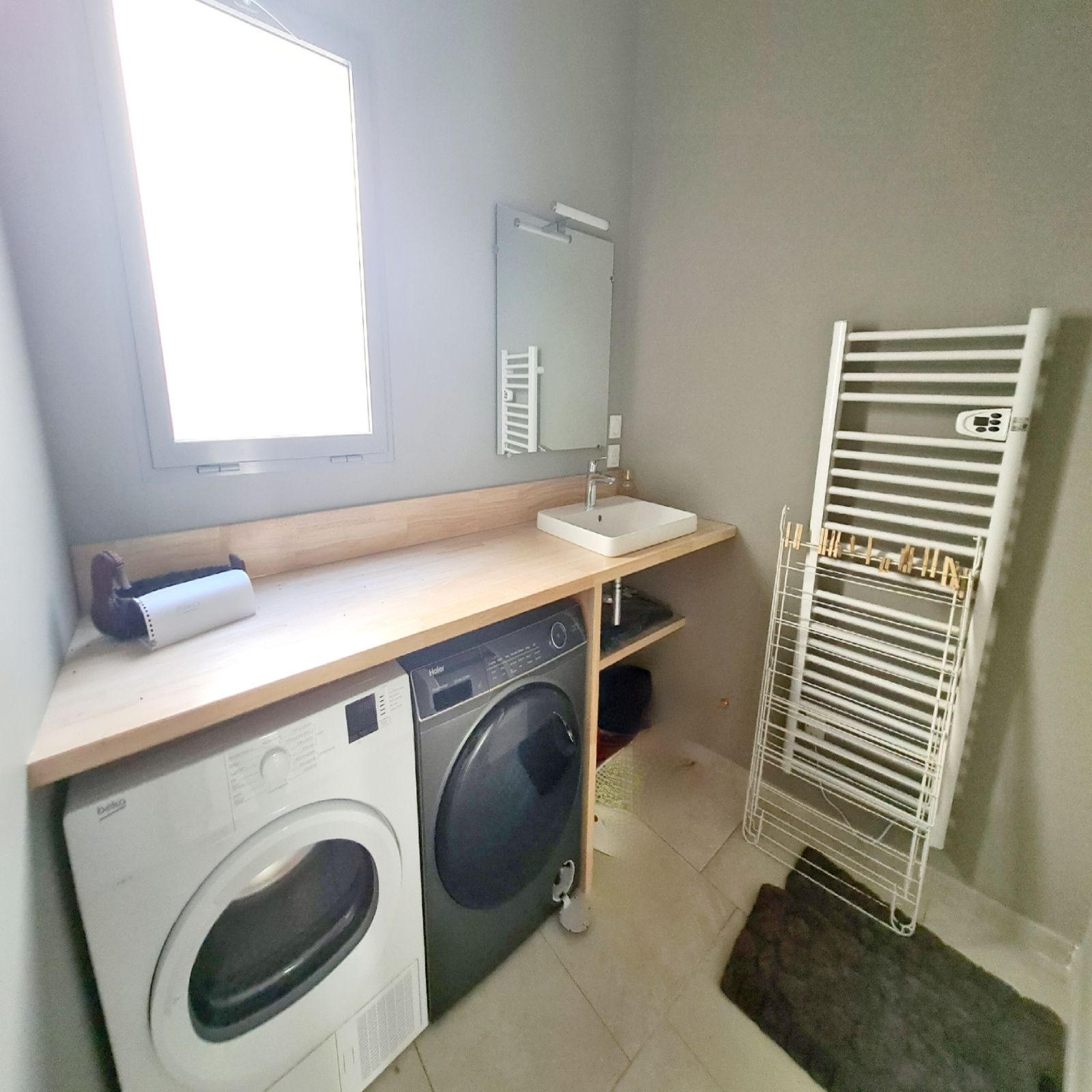A l'étage trois chambres de belle superficie avec placard, une salle d'eau et son coin buanderie, une salle de bain et wc indépendant.