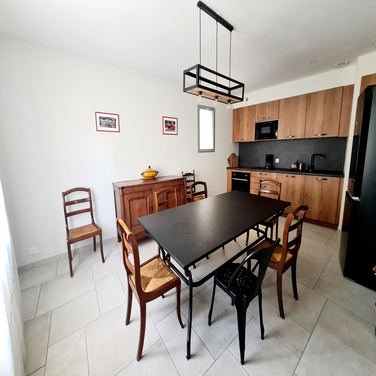 En rez de chaussée une belle cuisine équipée avec coin repas , un salon/séjour, wc.