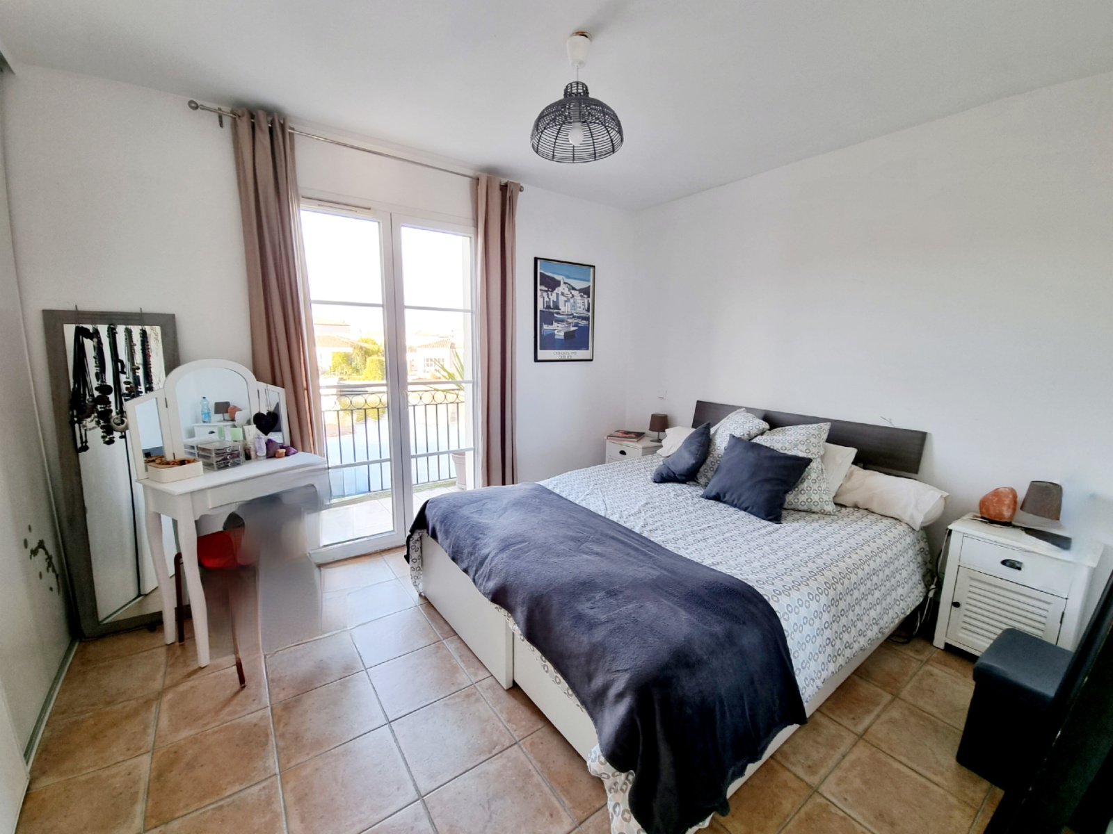 A l'étage on trouvera deux chambres avec placard dont une avec balcon sur-plombant le port, salle de bain et wc indépendant.