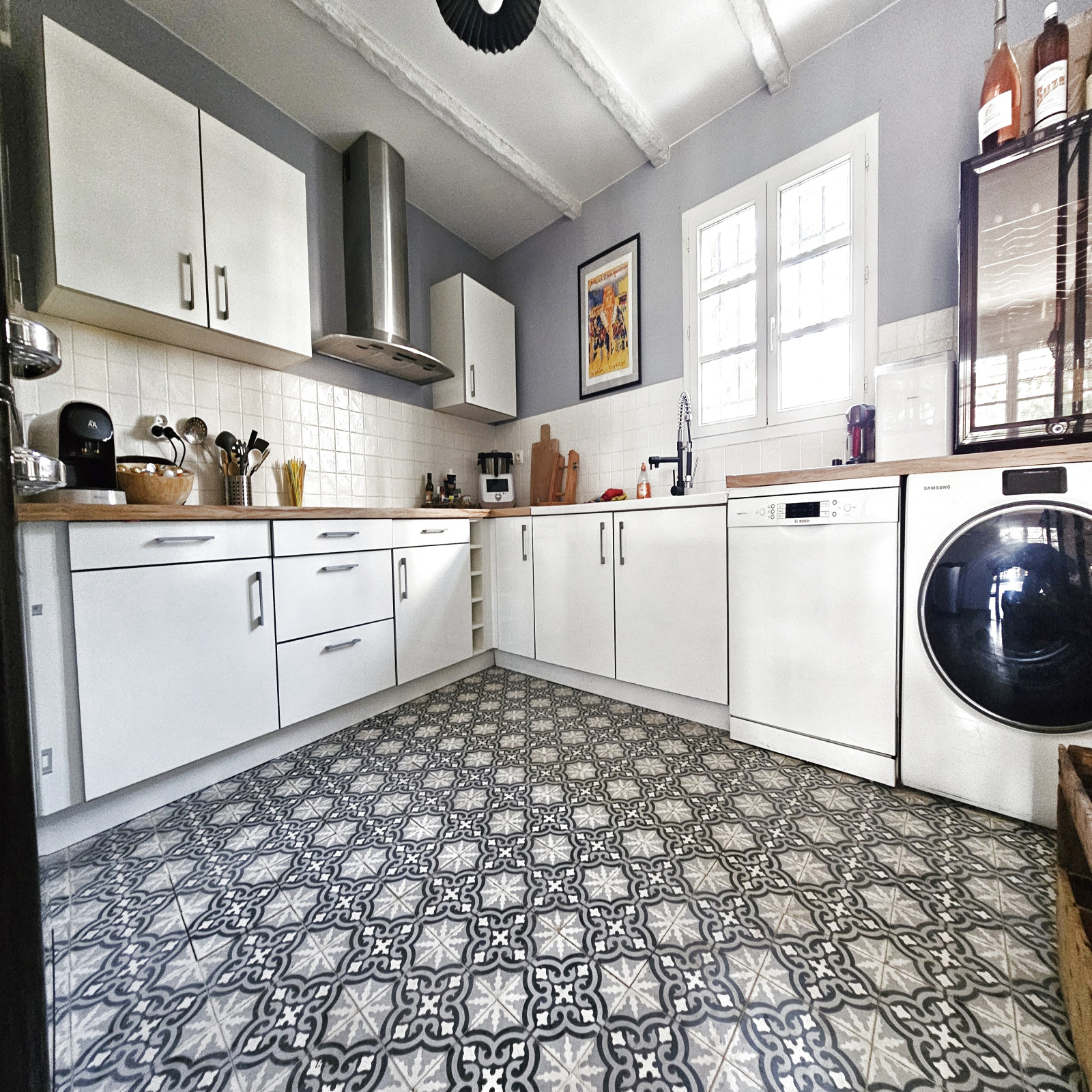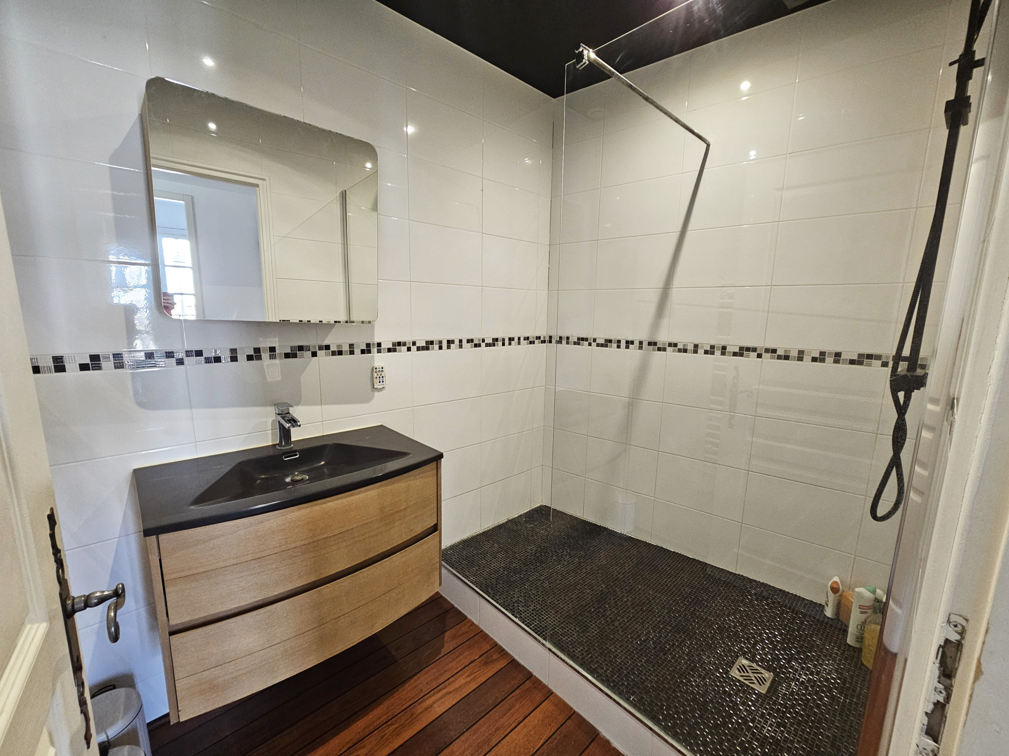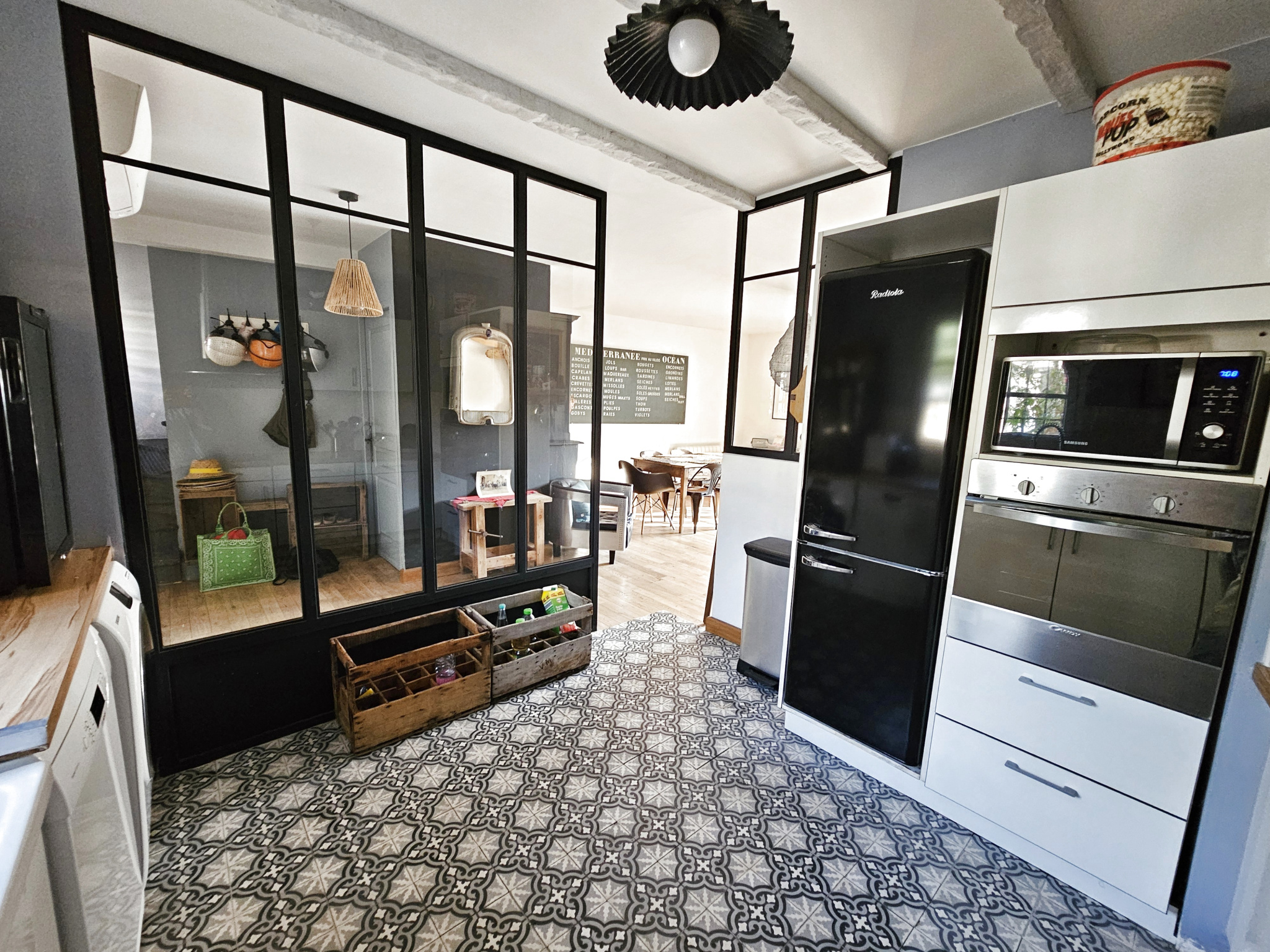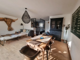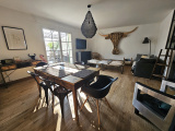 Au rez-de-chaussée composée d'un hall d'entrée, une cuisine équipée ouverte avec verrière, un salon/séjour spacieux et lumineux avec accès à la terrasse et jardin, un WC.