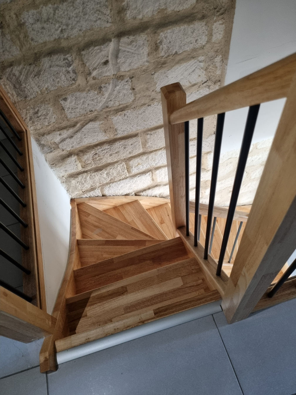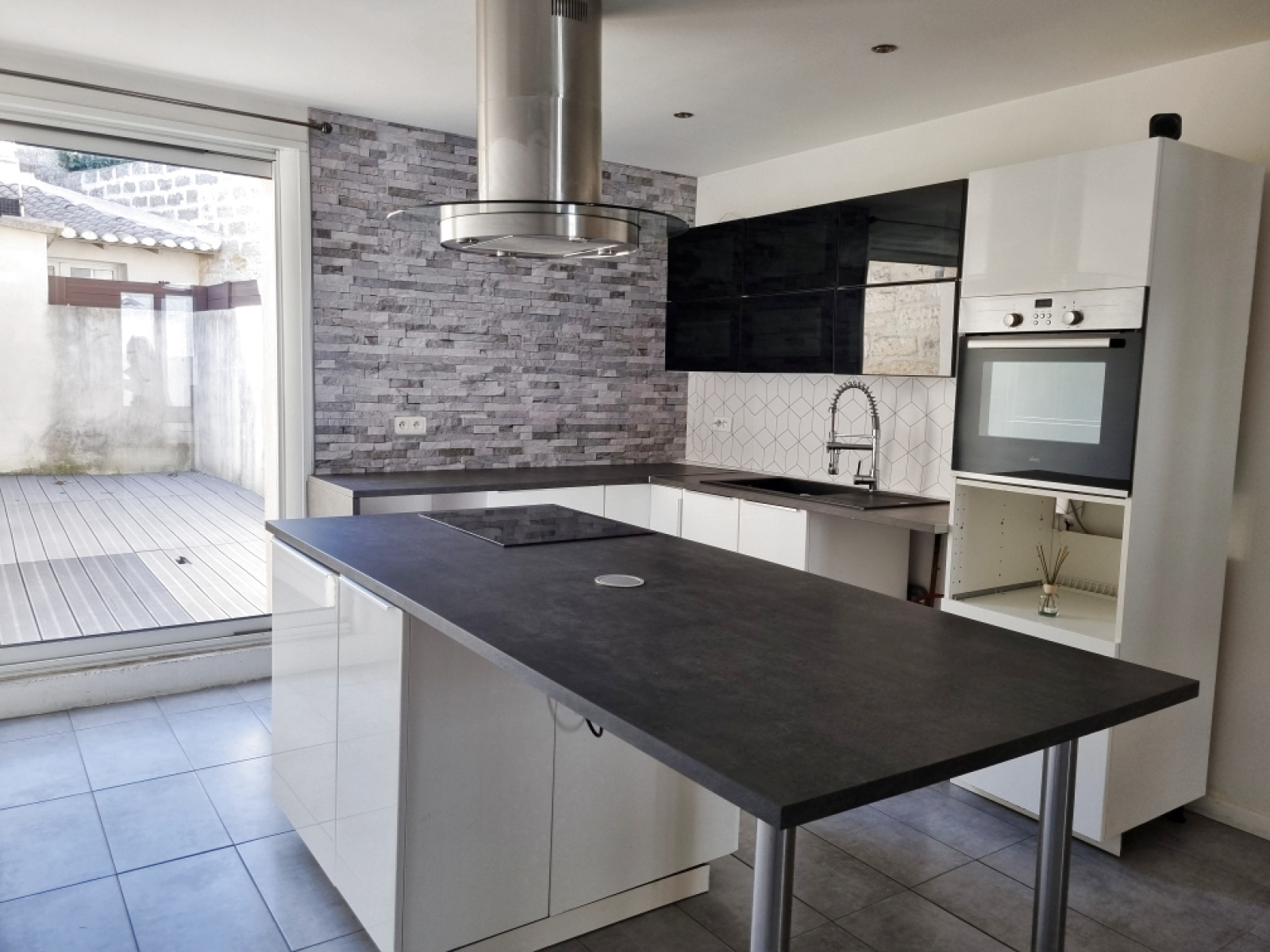 Elle se compose au rez-de-chaussée d'une cuisine repas donnant accès à la cour et sur le salon.