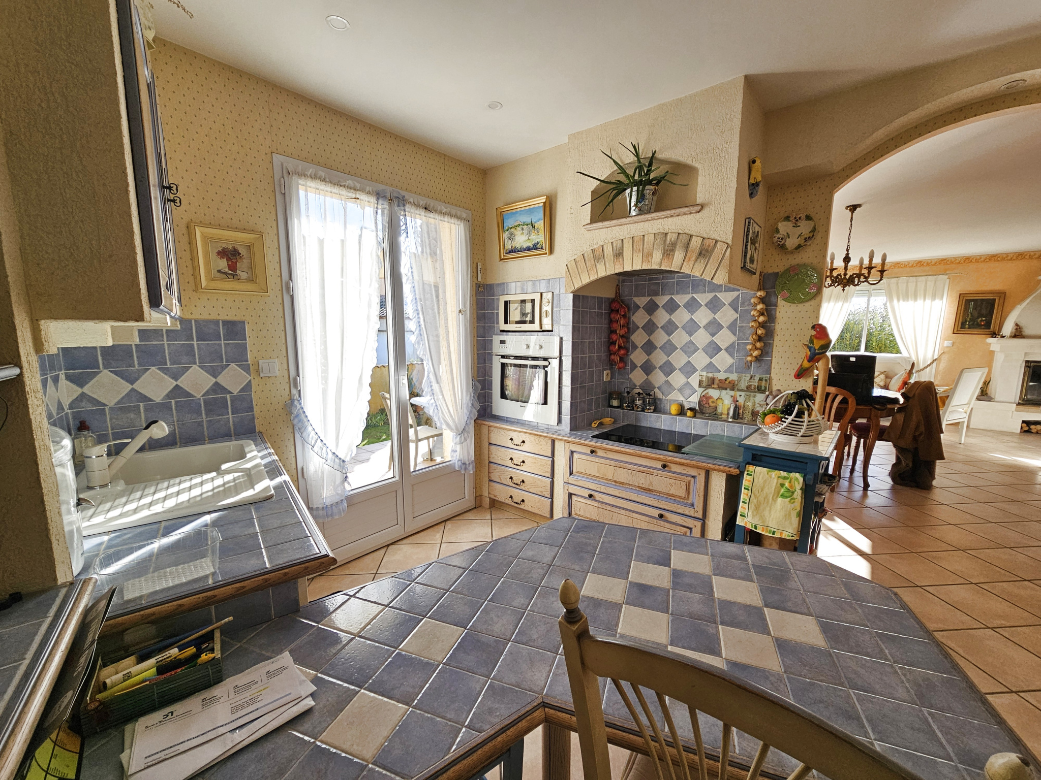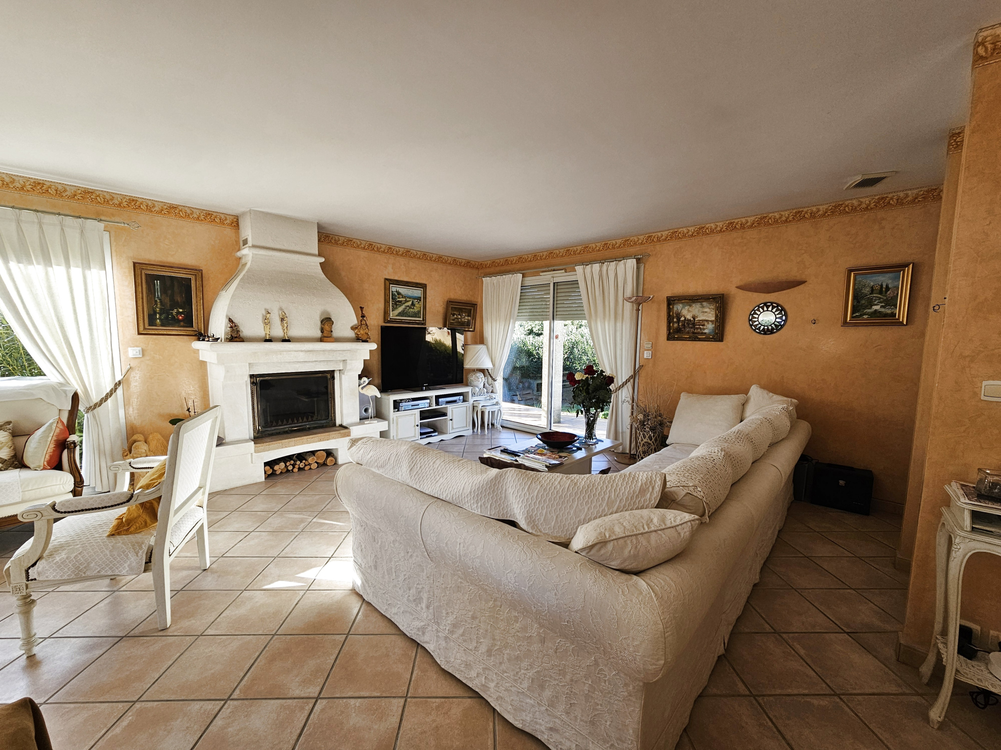 Trois chambres spacieuses dont une avec salle d'eau, une salle de bain, une cuisine équipée, buanderie, un salon-séjour avec cheminée ouvrant sur les terrasses et jardin. Un garage pour stationner votre véhicule, une place de stationnement devant le garage .