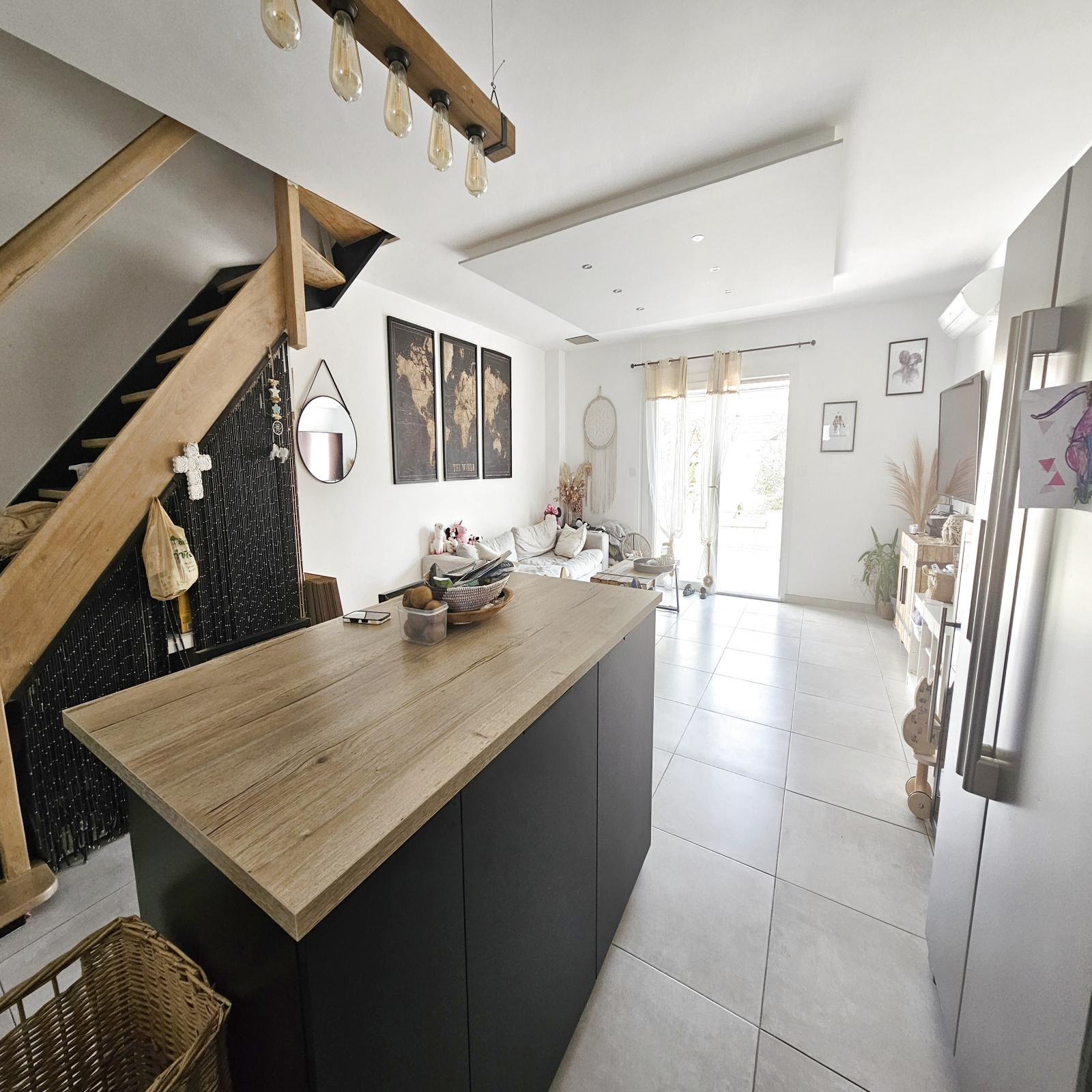 Au rez-de-chaussée, vous découvrirez une cuisine équipée ouverte sur un salon/séjour lumineux ouvert sur un coin jardin/cour ainsi qu'un wc.