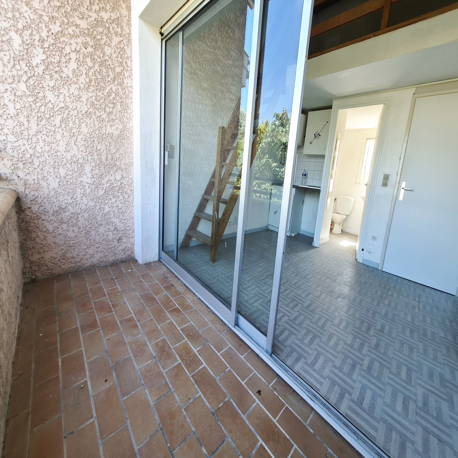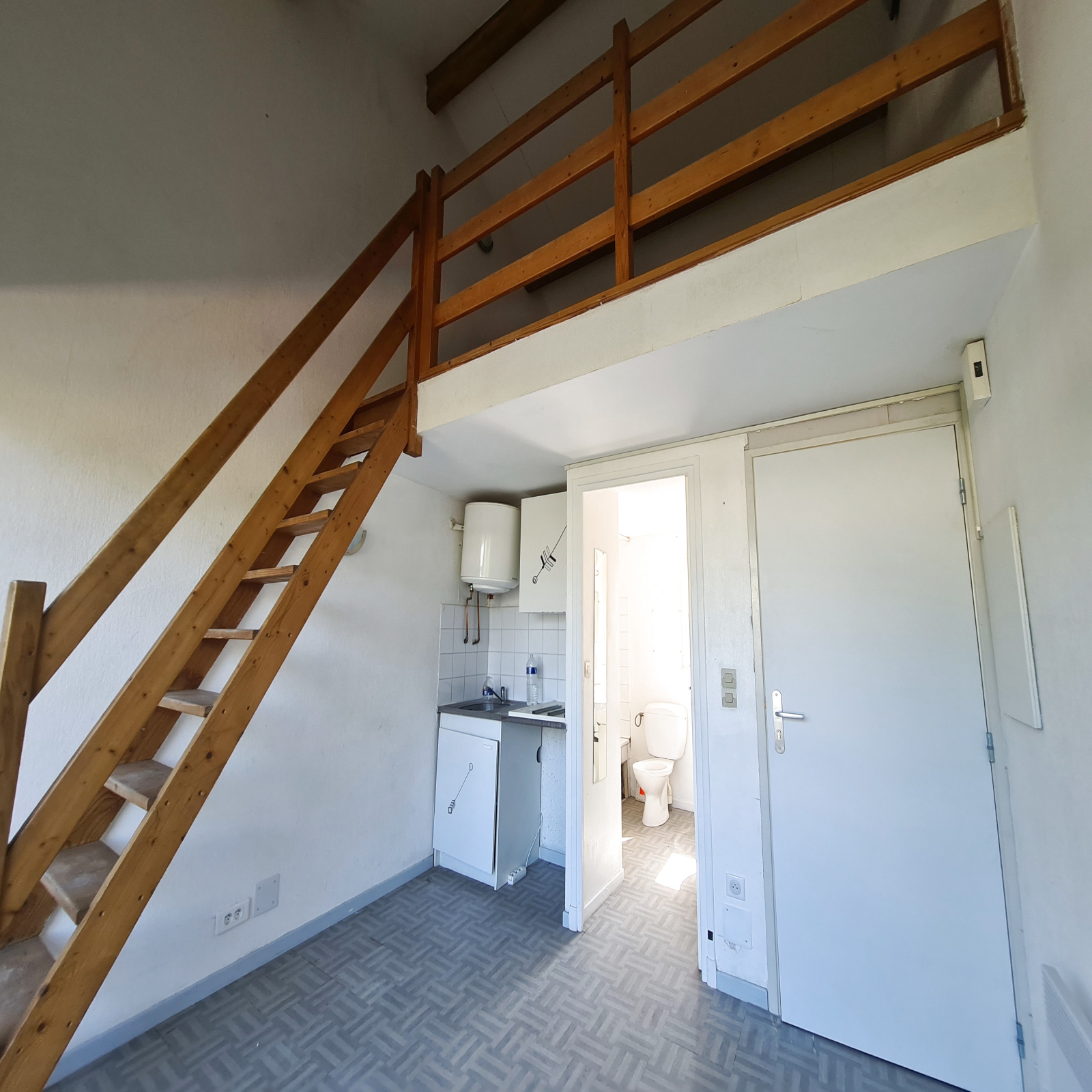 Proche canal, dans petite résidence au premier étage, studio composée d'une entrée avec cage d'escalier ,d'une pièce de vie avec coin kitchenette, une salle de bain avec WC, à l'étage une mezzanine, grand balcon.