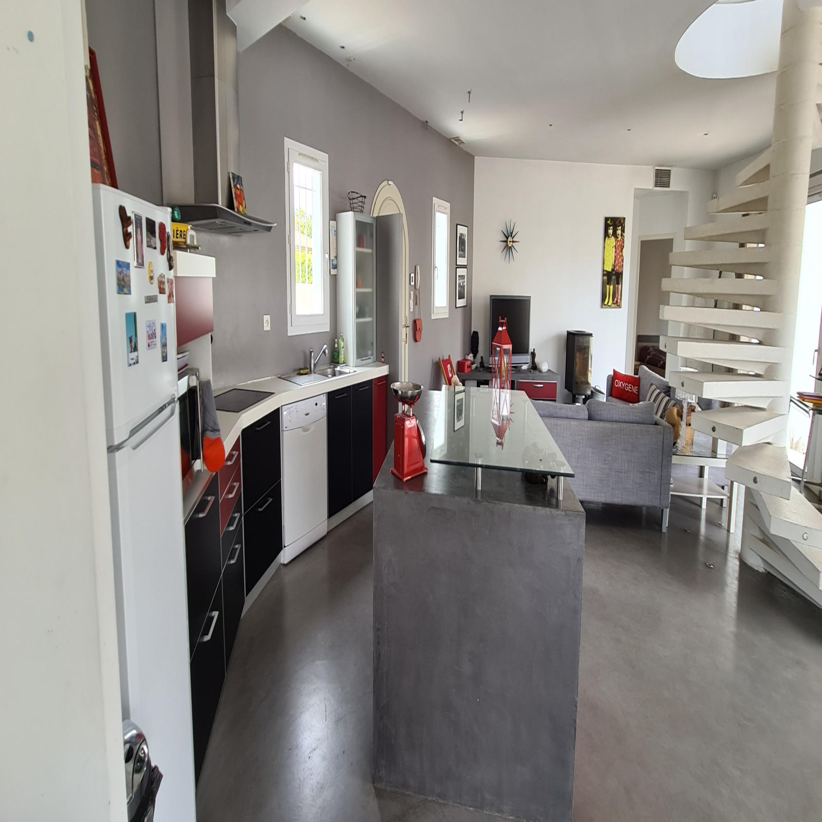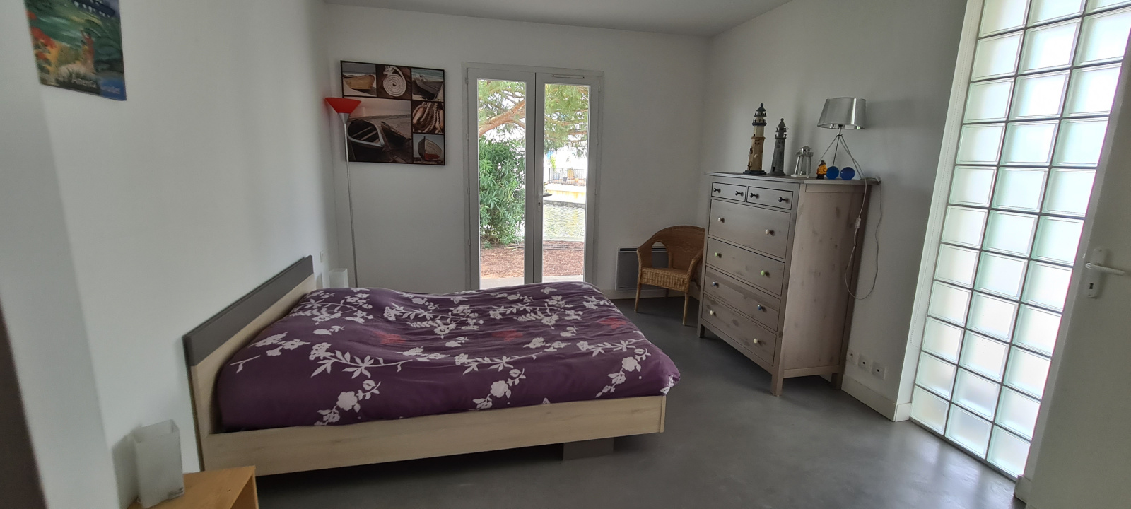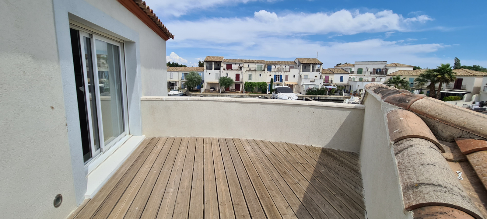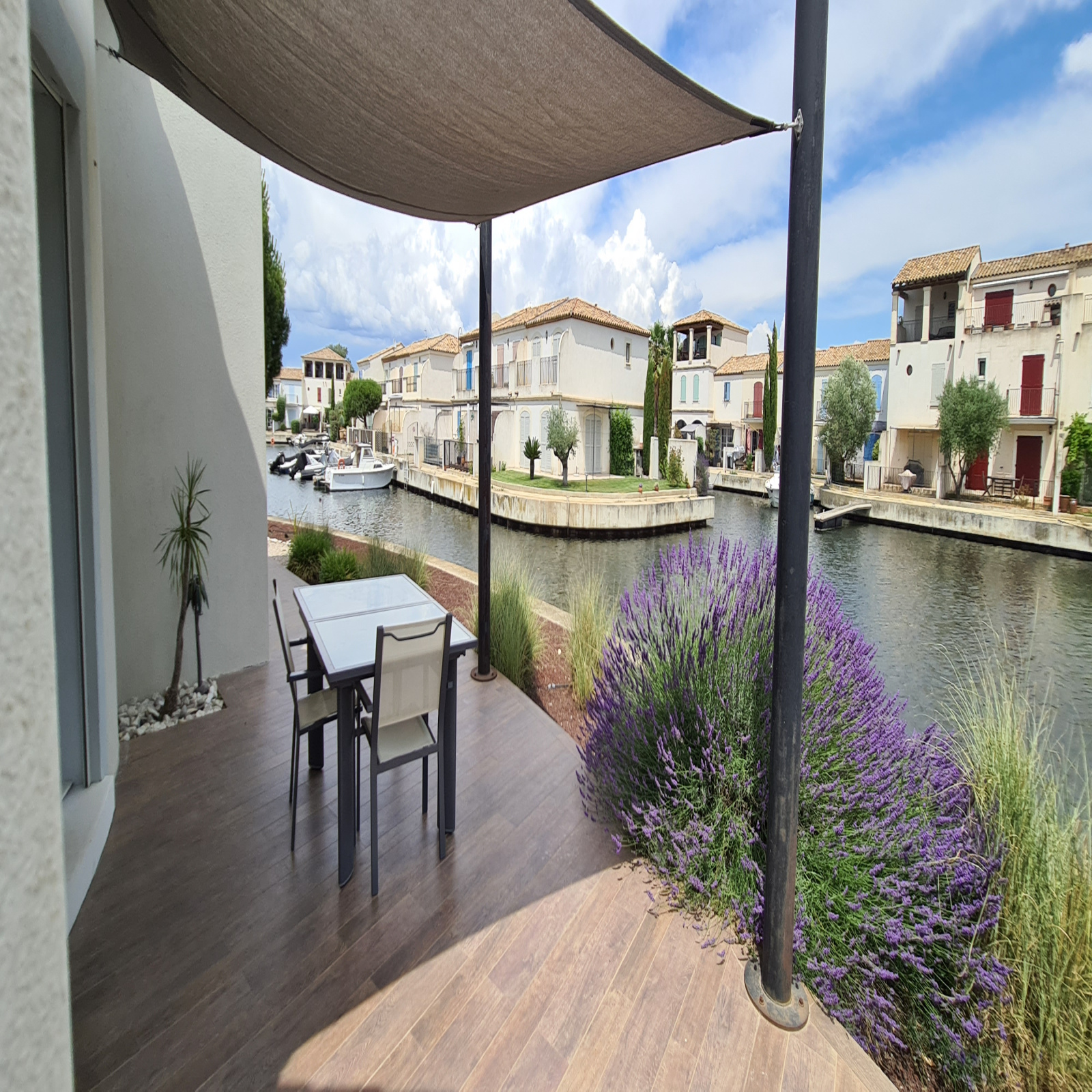 Elle se compose au rez-de-chausée d'une exceptionnelle pièce à vivre d'une surface d'environ 100m² avec cuisine équipée le tout ouvert par différentes baies donnant sur les terrasses, sur le port et son couloir de nage.