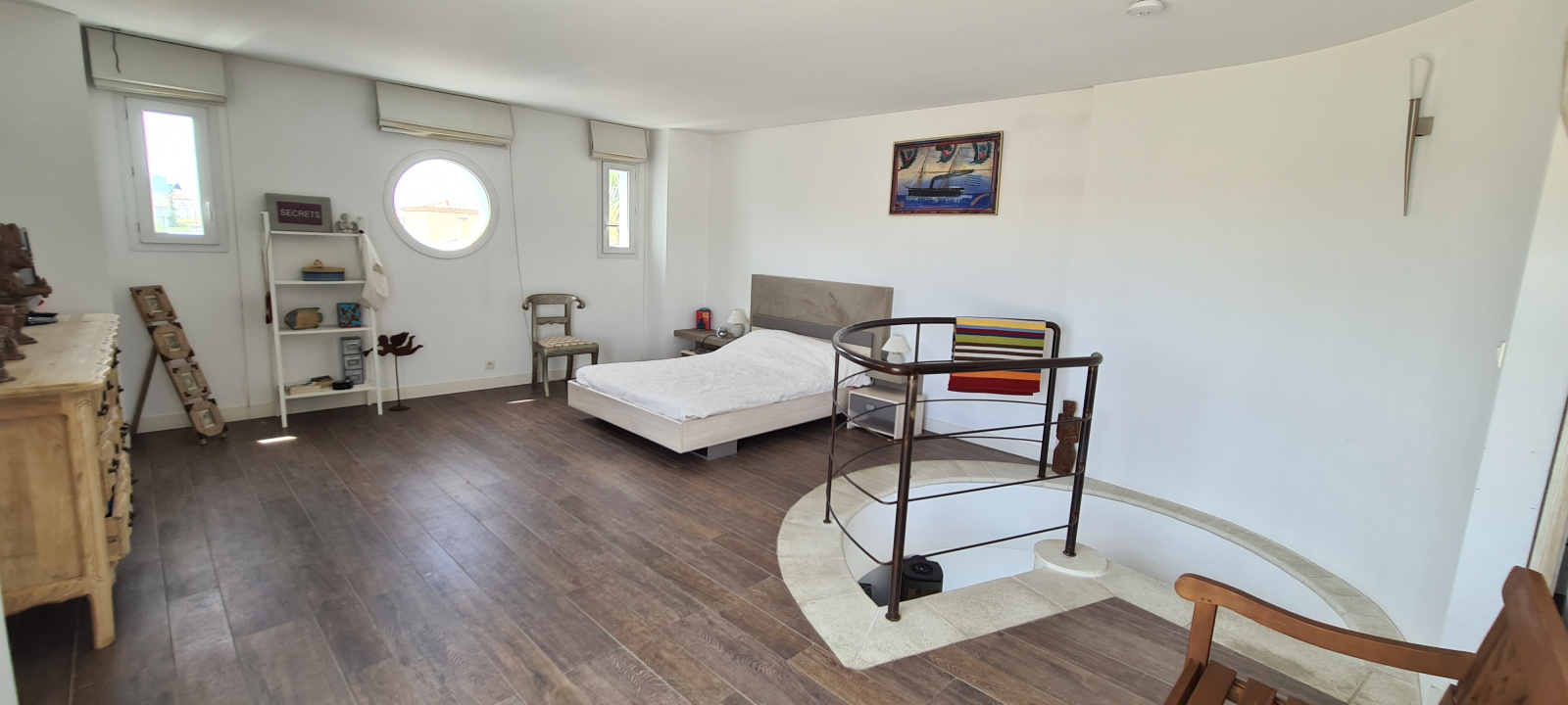 A l'étage une grande suite parentale avec dressing et sa grande salle d'eau à l'italienne et wc, ouvert sur bel espace solarium.