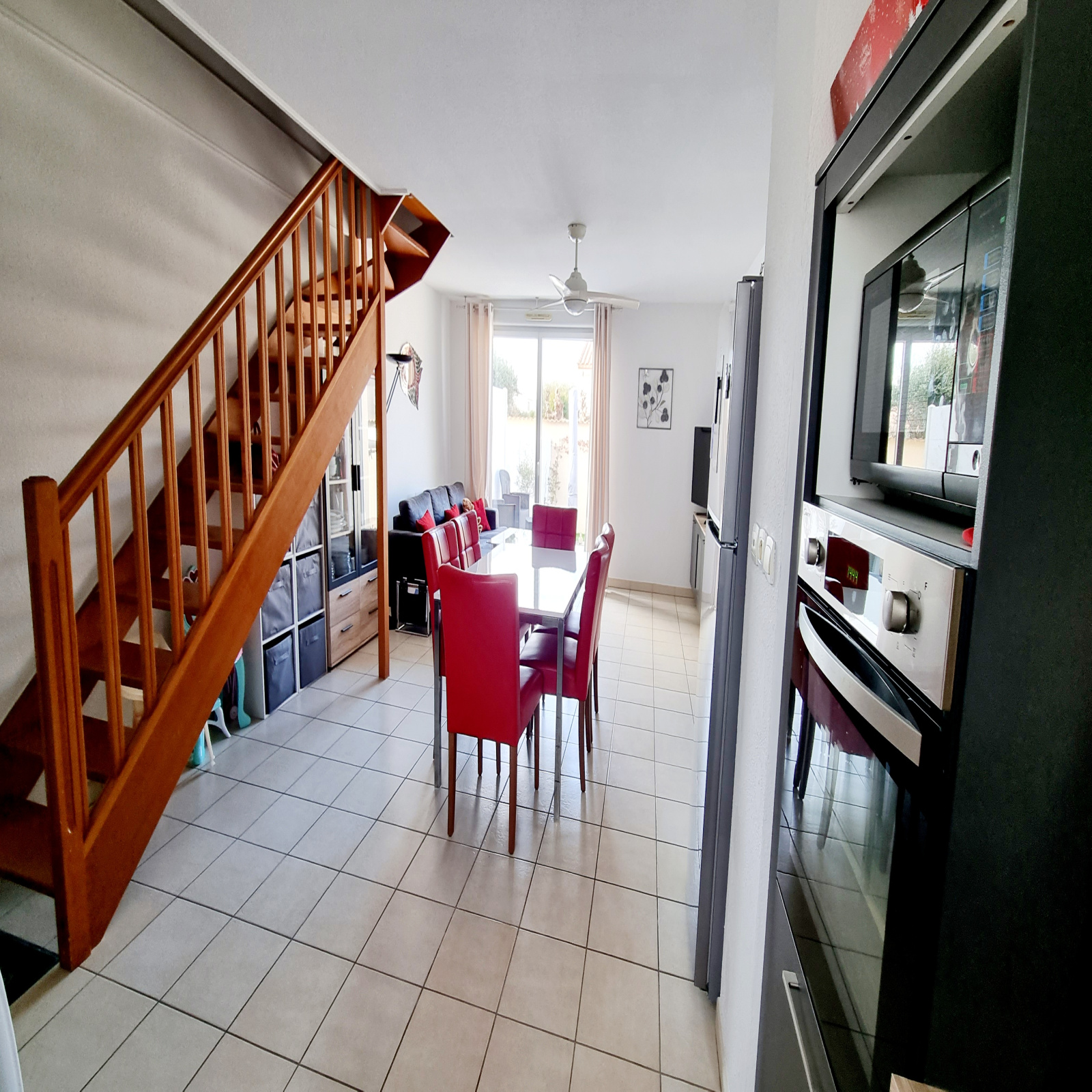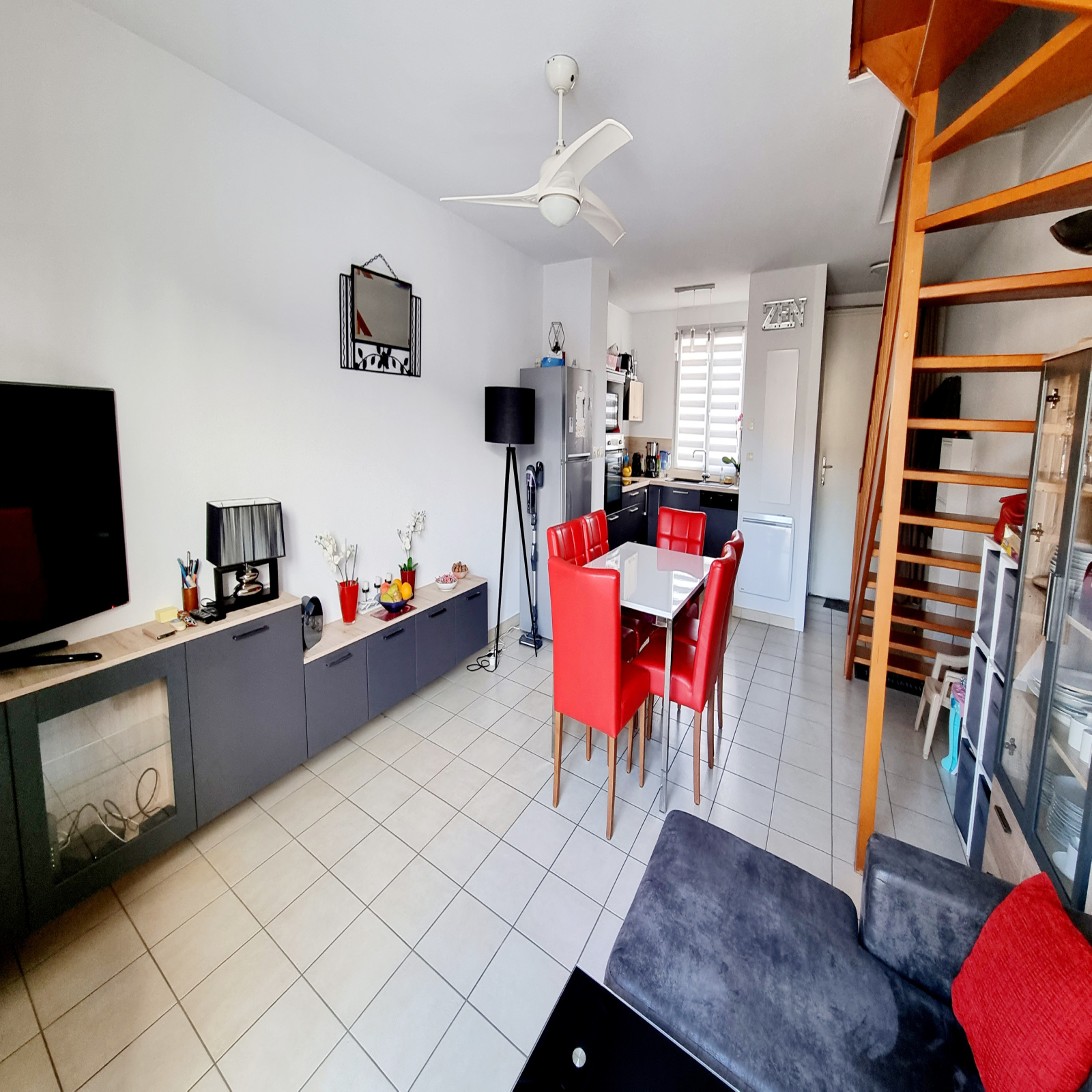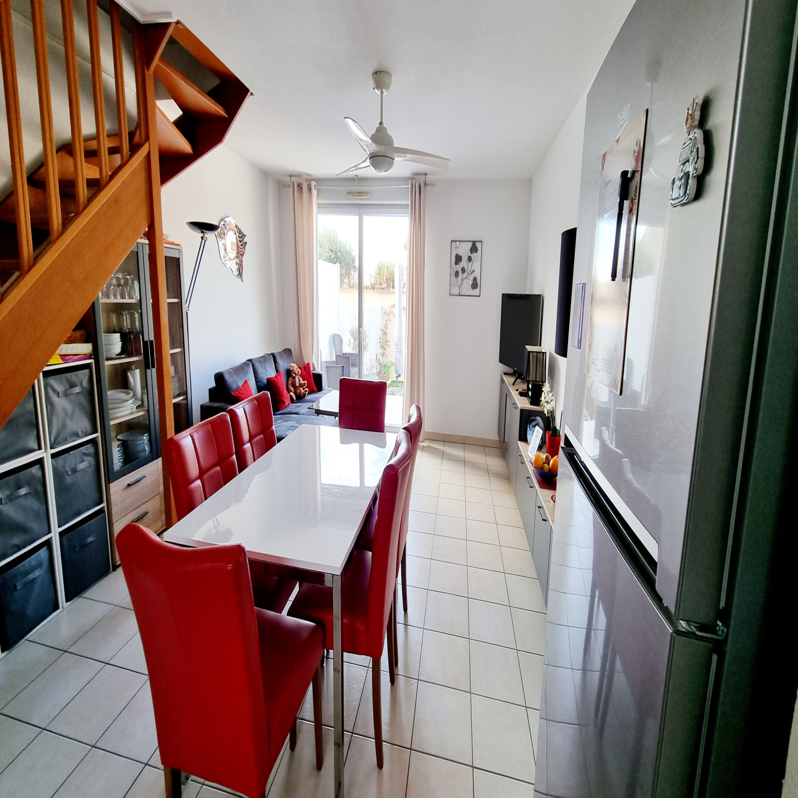 Chauffage électrique , double vitrage , ventilateur au plafond dans toute les pièces, volet bois, store banne électrique, fibre.