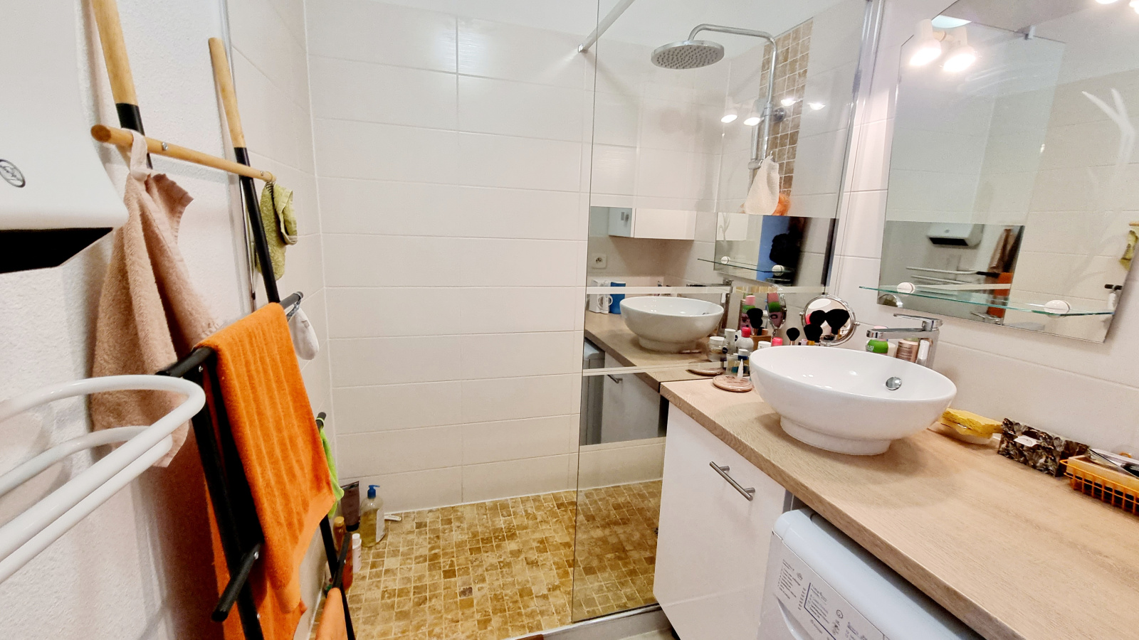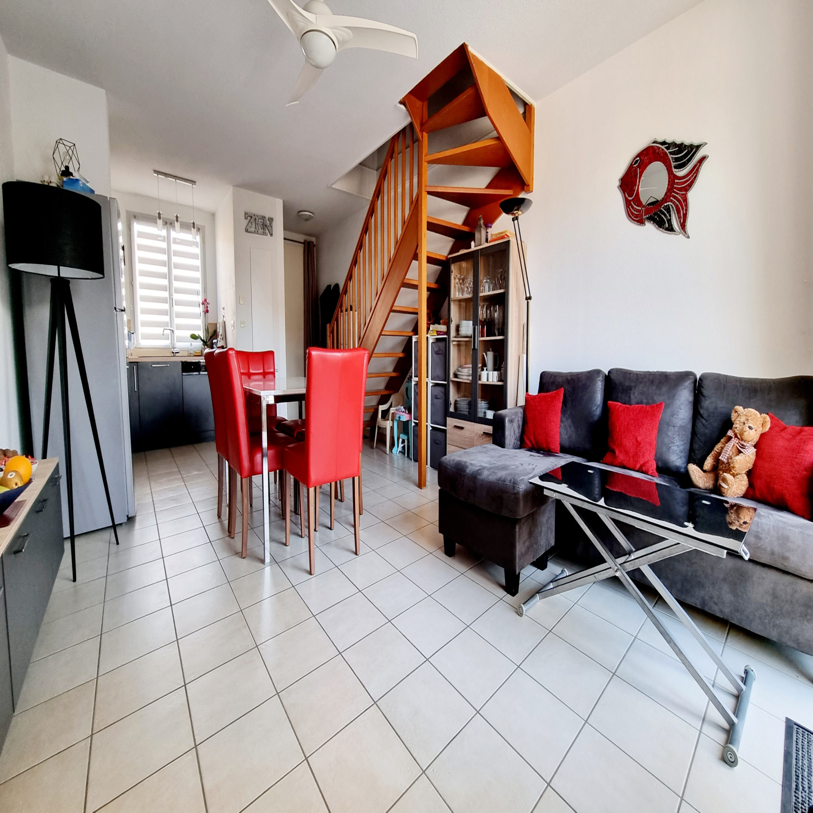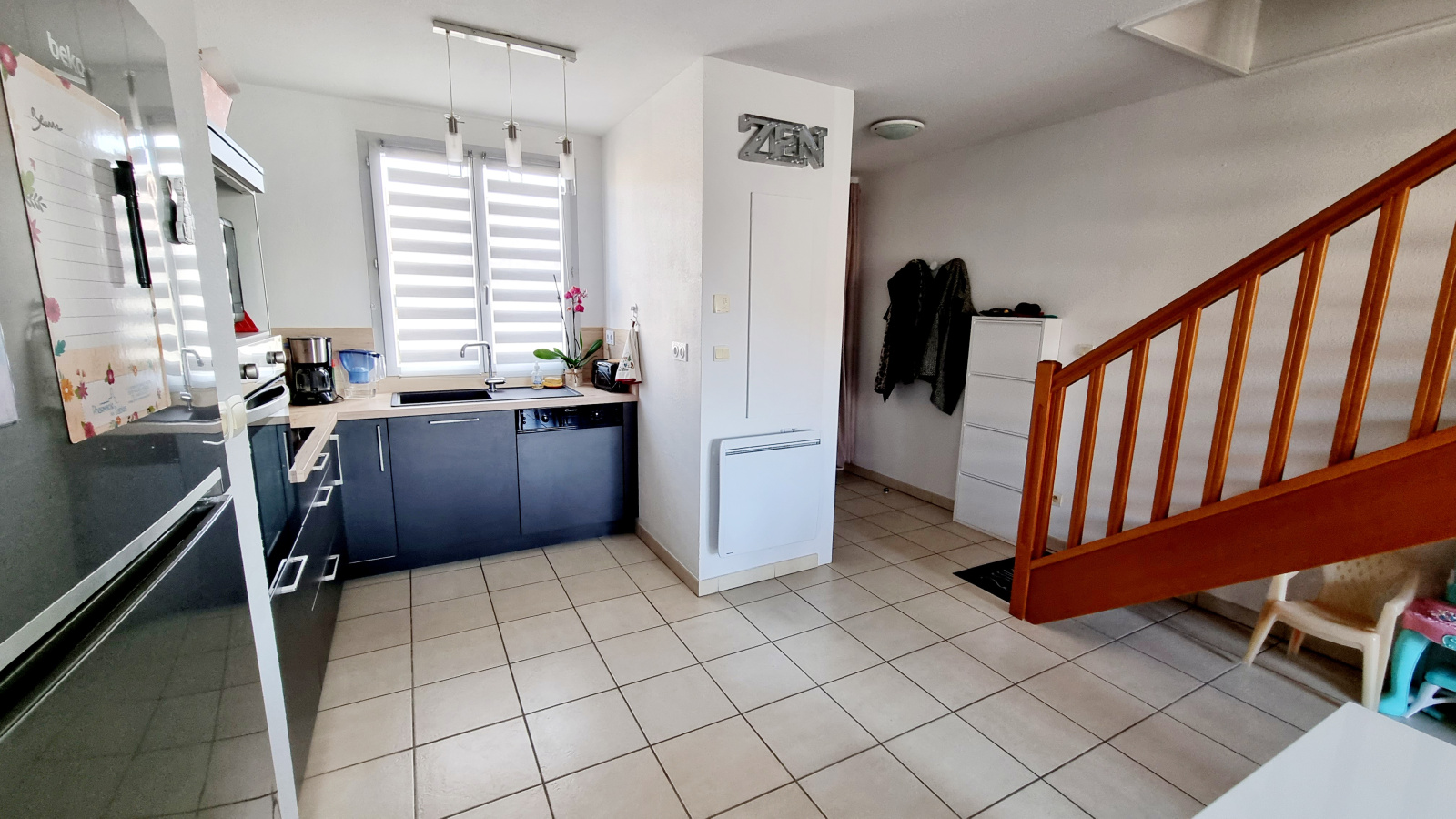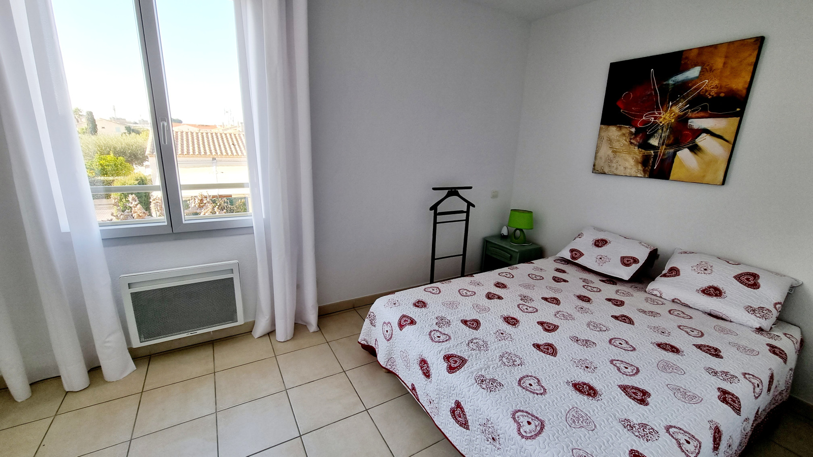 Chauffage électrique , double vitrage , ventilateur au plafond dans toute les pièces, volet bois, store banne électrique, fibre.