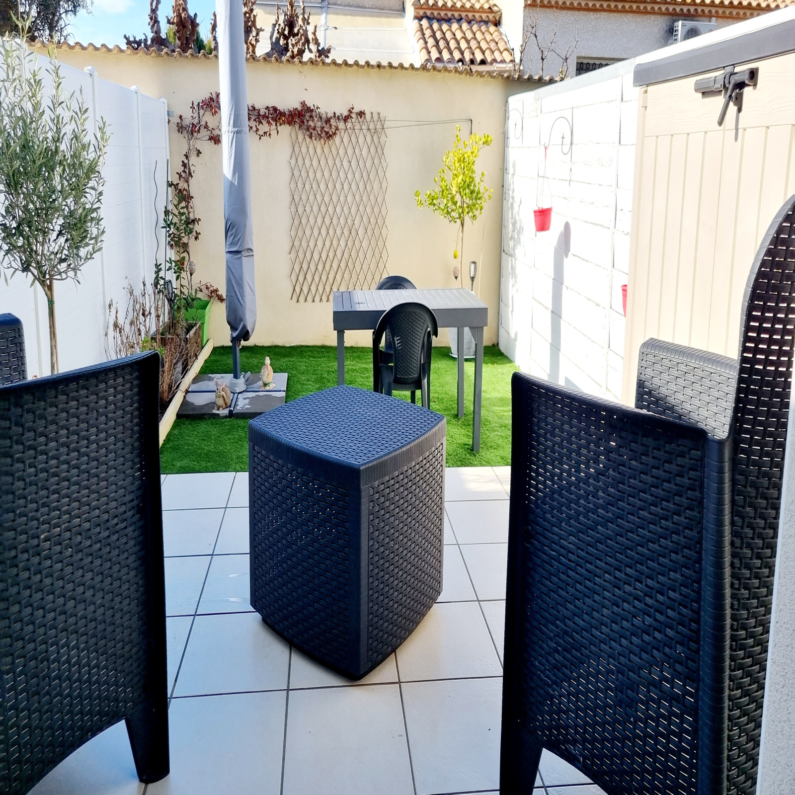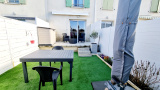 Proche de la place du marché et de la cité médiéval, villa en R+1 traversante, en copropriété avec terrasse, jardinet, garage et place de parking en parfait état.