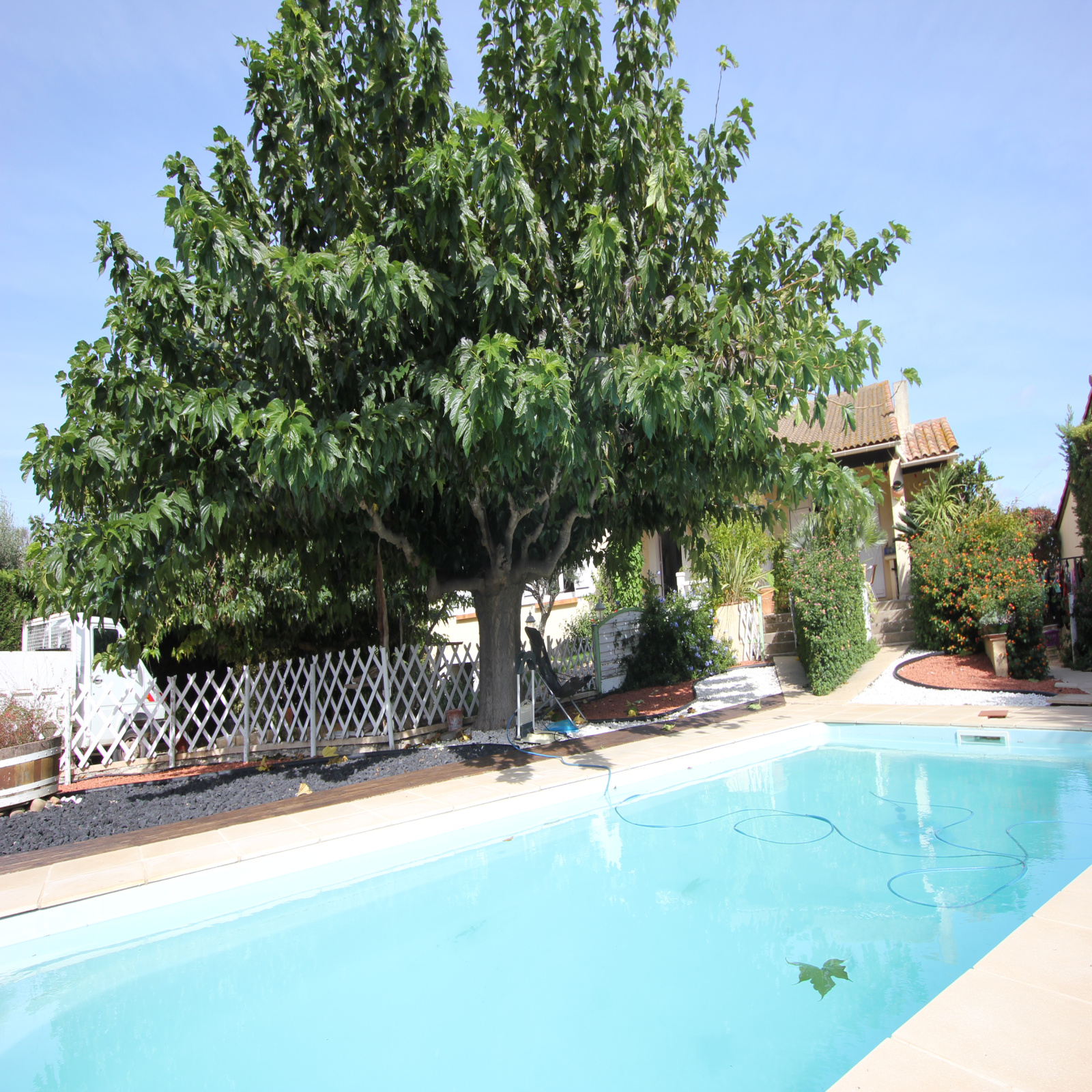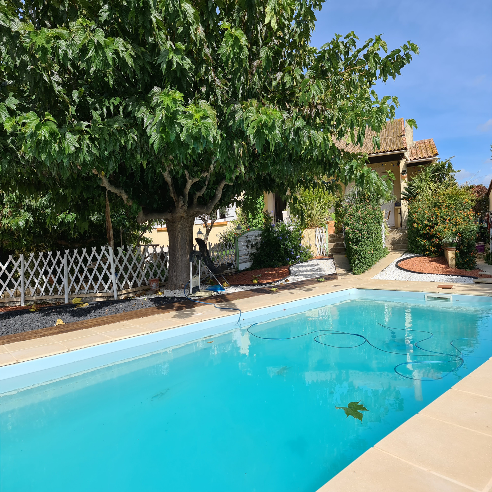 A découvrir cette villa de plain pied d environ 130m²orienté sud sur un terrain de 1600 m² avec piscine et grand garage en sous sol faisant la superficie de la maison.