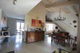 cette villa se compose d'un séjour ouvert sur le salon avec cheminée, une cuisine séparée équipée avec celier donnant sur la terrasse , trois chambres avec placard , salle de bains avec baignoire et douche, wc séparé. En mezannine ont y trouve un bureau et une piece pouvant servir de 4éme chambre .