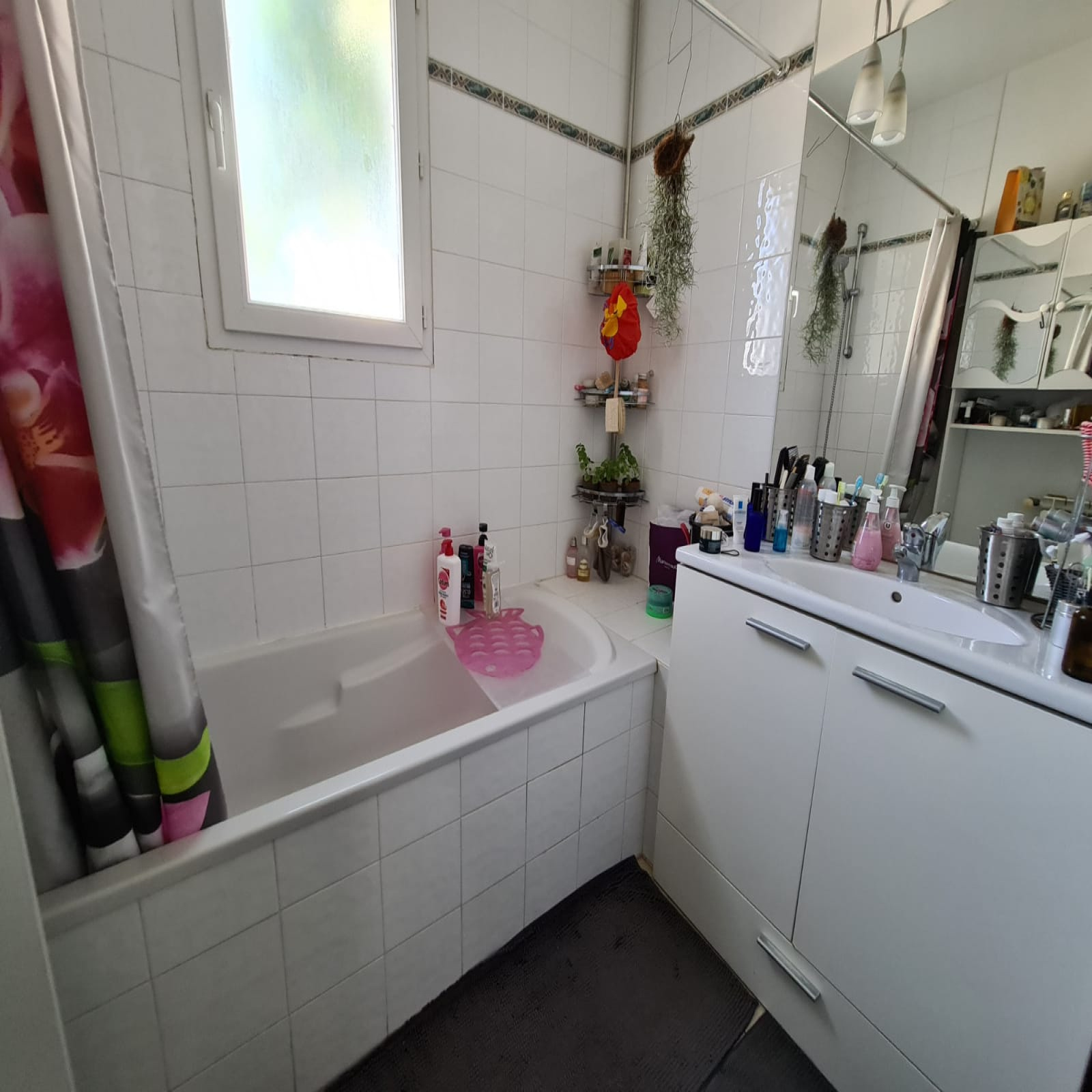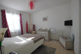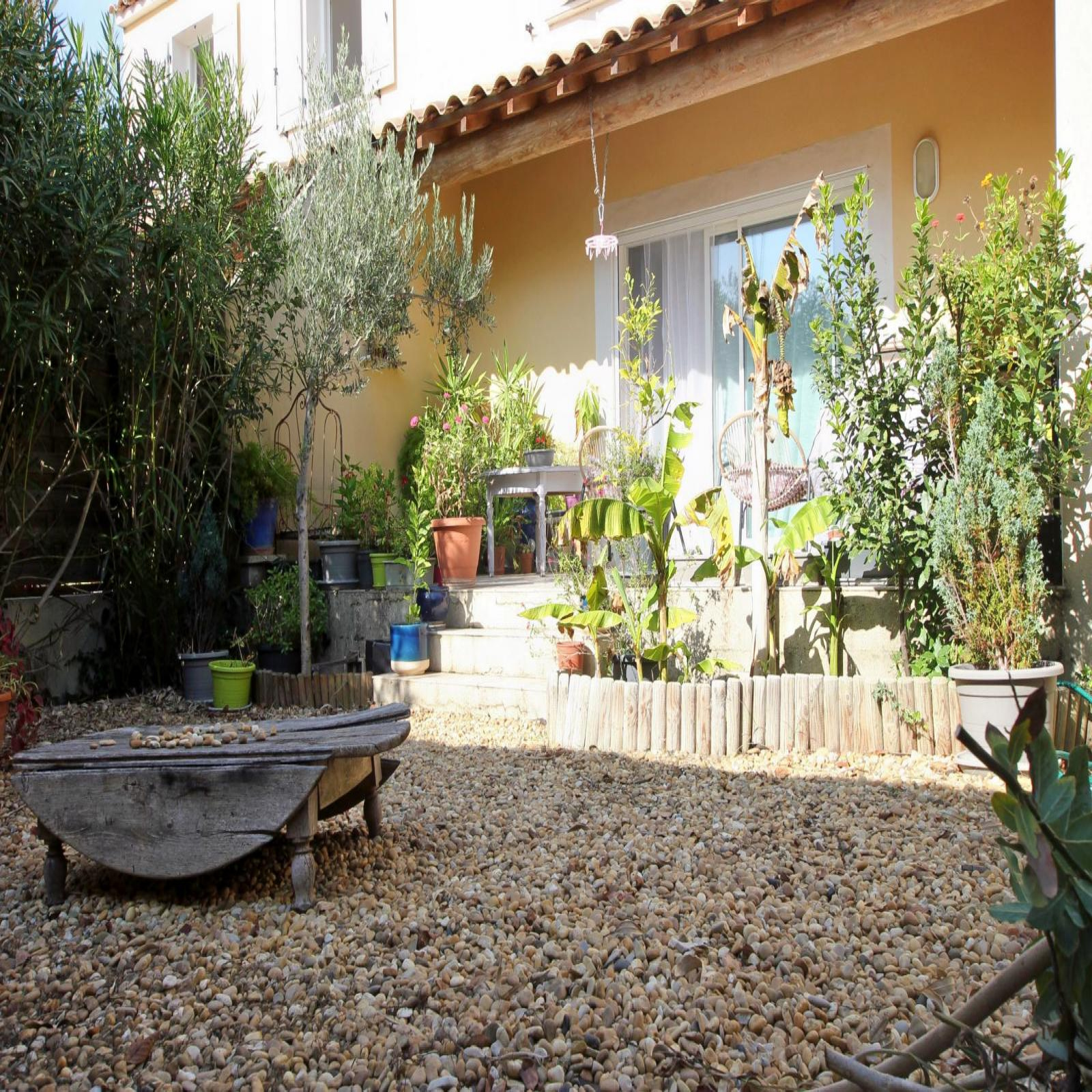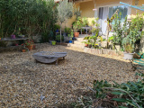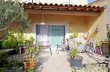 Elle se compose d'un hall d' entrée avec placard, cuisine en partie équipée donnant sur salon-séjour avec sa baie vitrée accédant à la terrasse et à son jardin, WC et à l'étage trois chambres, salle de bains et wc indépendant.