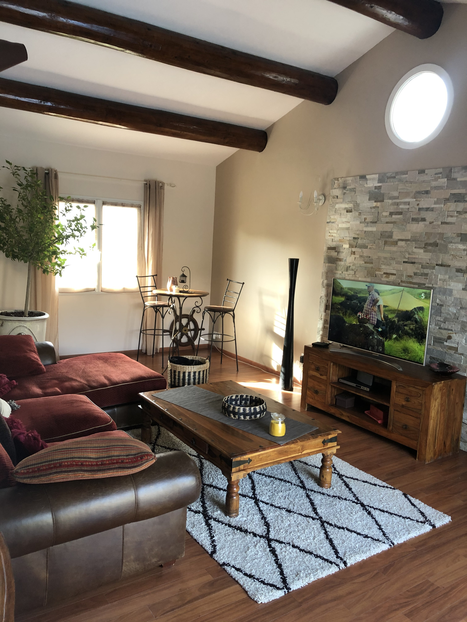 Elle se compose en rez-de-chaussée d'un joli salon, d'un sejour ouvert sur une cuisine équipée donnant accès à la piscine et la terrasse, d'une suite parentale avec placard salle d'eau et wc.