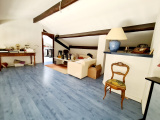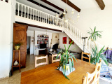 Il se compose d'un garage de 21 m² avec un parking. Au 1er étage se trouve la grand pièce de vie avec cheminée et la cuisine équipée neuve séparée ouverte sur la terrasse, un cellier, 2 chambres, une salle d'eau-buanderie, une salle de bains, WC séparé, balcon, au 1er étage une grande mezzanine avec une chambre.