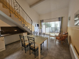 Chaque villa dispose au rez-de-chaussée d'une entrée, une piéce de vie avec cuisine équipée, une chambre, une salle d'eau avce wc. A l'étage une mezzanine et une chambre avec placard.