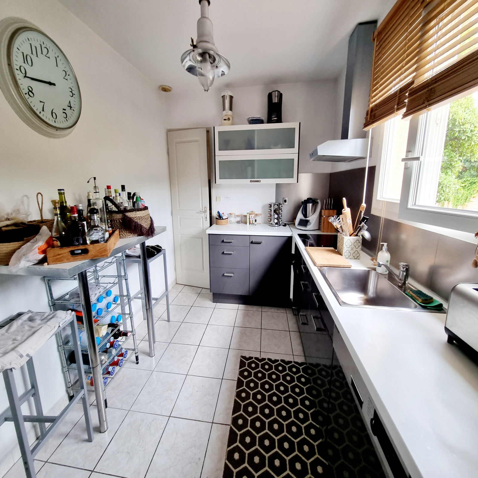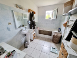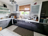 Elle se compose d'un hall d'entrée, d'une cuisine séparée avec possibilité d'ouverture sur le salon, un salon/séjour donnant sur une terrasse en bois, un hall desservant trois chambres, une salle de bain et wc indépendant. Garage avec coin buanderie.
